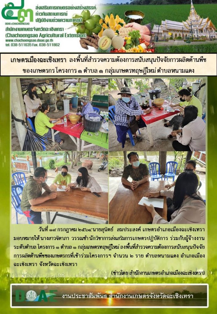 เกษตรอำเภอเมืองฉะเชิงเทรา ลงพื้นที่สำรวจความต้องการสนับสนุนปัจจัยการผลิตด้านพืชของเกษตรกรโครงการ 1 ตำบล 1 กลุ่ม ทฤษฎีใหม่ ตำบลหนามแดง 19 กรกฎาคม 2021 admin_cha ข่าวทั่วไป 0