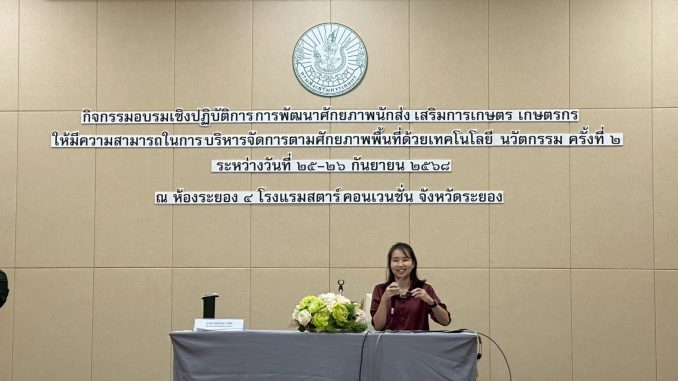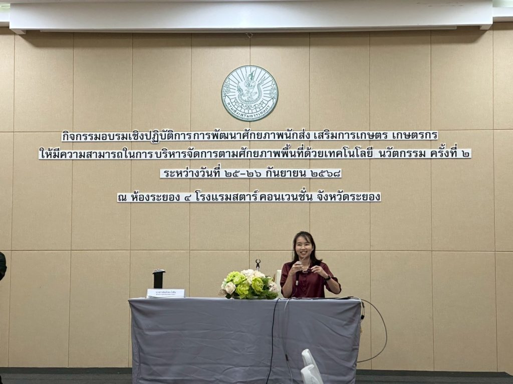 วันที่ 25 – 26 กันยายน 2568 นายมนตรี ส่องแสงจันทร์ เกษตรอำเภอพนมสารคาม มอบหมายให้นางสาวธิดารัตน์ นาคสังข์ นักวิชาการส่งเสริมการเกษตรปฏิบัติการ เข้าร่วมโครงการ “การพัฒนารูปแบบบูรณาการร่วมกันกับภาคีเครือข่ายเชิงพื้นที่เพื่อถ่ายทอดเทคโนโลยีและนวัตกรรมเกษตรด้าน BCG สู่ชุมชน” ระดับเขต กิจกรรมอบรมเชิงปฏิบัติการการพัฒนาศักยภาพนักส่งเสริมการเกษตร ให้มีความสามารถในการบริหารจัดการตามศักยภาพพื้นที่ ด้วยเทคโนโลยี นวัตกรรม ครั้งที่ 2 เพื่อพัฒนาศักยภาพเจ้าหน้าที่ส่งเสริมการเกษตรให้มีความสามารถในการบริหารจัดการด้วยเทคโนโลยีและนวัตกรรม รวมถึงพัฒนารูปแบบการบูรณาการร่วมกันกับภาคีเครือข่ายเพื่อถ่ายทอดเทคโนโลยีและนวัตกรรมเกษตรที่เหมาะสมกับพื้นที่ โดยมีนางสาวนันท์ปพร โกซิน ผู้อำนวยการกลุ่มส่งเสริมการเกษตรและพัฒนาการเกษตรที่ 3 จังหวัดระยอง เป็นประธานในพิธีเปิดโครงการฯ พร้อมด้วยเจ้าหน้าที่ระดับจังหวัด และระดับอำเภอเข้าร่วมโครงการ ณ โรงแรม สตาร์ คอนเวนชั่น ระยอง อำเภอเมืองระยอง จังหวัดระยอง