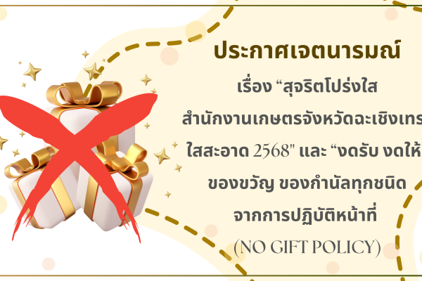 สำนักงานเกษตรจังหวัดฉะเชิงเทรา ประกาศเจตนารมณ์เรื่อง “สุจริต โปร่งใส สำนักงานเกษ…
