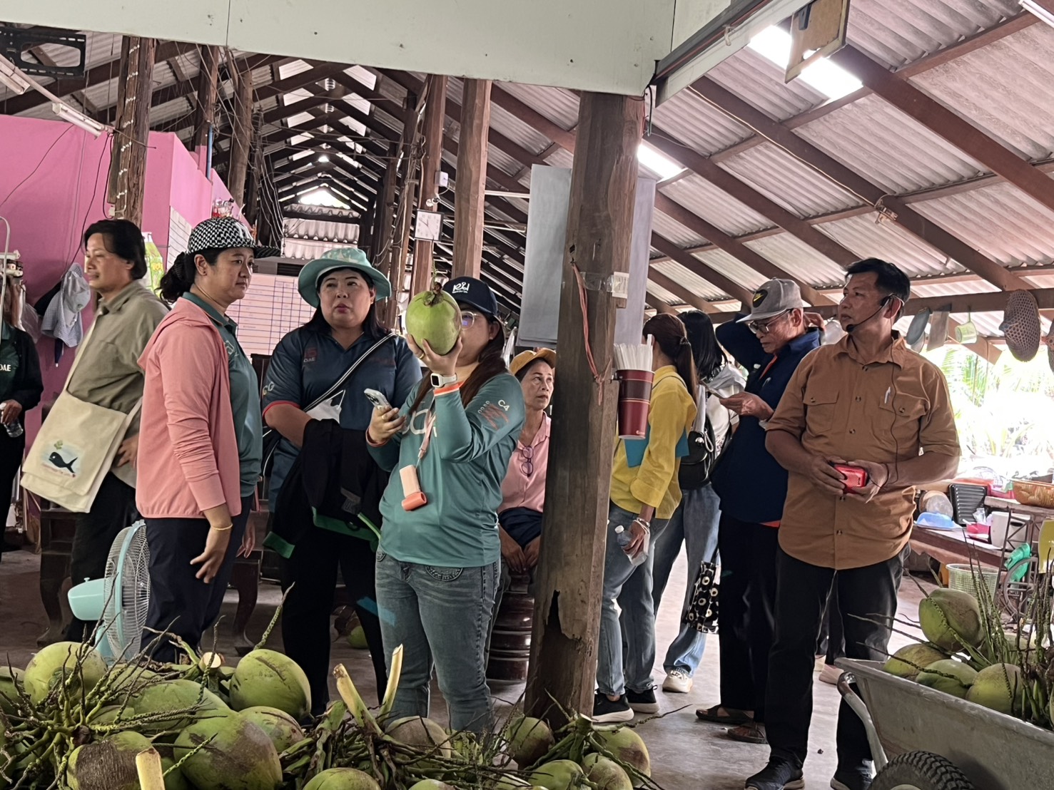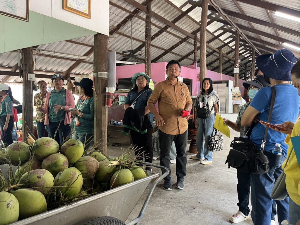 สำนักงานเกษตรจังหวัดฉะเชิงเทรา โดยนายดนัย ปัญจพิทยากุล เกษตรจังหวัดฉะเชิงเทรา มอบหมายให้ นางสาวอังคณา นาเมืองรักษ์ หัวหน้ากลุ่มส่งเสริมและพัฒนาการผลิต พร้อมด้วย นางสาวอรพรรณ ชุติวศิน นักวิชาการส่งเสริมการเกษตรชำนาญการ กลุ่มส่งเสริมและพัฒนาการผลิต ร่วมต้อนรับคณะศึกษาดูงานจากสำนักงานเกษตรจังหวัดสมุทรสงคราม นำเกษตรกร เข้าศึกษาดูงานตามโครงการส่งเสริมและพัฒนาเพื่อเข้าสู่ห่วงโซ่อุปทานและบริการมูลค่าสูง กิจกรรมส่งเสริมและพัฒนา เพื่อเข้าสู่ห่วงโซ่อุปทานและบริการมูลค่าสูง เพื่อส่งเสริมให้เกษตรกรเกิดแนวคิดในการเพิ่มประสิทธิภาพการผลิตสินค้าเกษตร อย่างมีคุณภาพ โดยมี ผู้เข้าร่วมกิจกรรมประกอบด้วยเกษตรกรและเจ้าหน้าที่ รวมทั้งสิ้น 45 ราย ทั้งนี้มี นางสาวจิราวดี สุแดงน้อย เกษตรอำเภอคลองเขื่อน เจ้าหน้าที่สำนักงานเกษตรอำเภอคลองเขื่อน และเจ้าหน้าที่สำนักงานเกษตรอำเภอบางคล้า เข้าร่วมกิจกรรมดังกล่าวด้วย ณ วิสาหกิจชุมชนมะพร้าวน้ำหอมจังหวัดฉะเชิงเทรา ตำบลสาวชะโงก อำเภอบางคล้า จังหวัดฉะเชิงเทรา และวิสาหกิจชุมชนมะพร้าว Coco Cowboy ตำบลบางตลาด อำเภอคลองเขื่อน จังหวัดฉะเชิงเทรา
