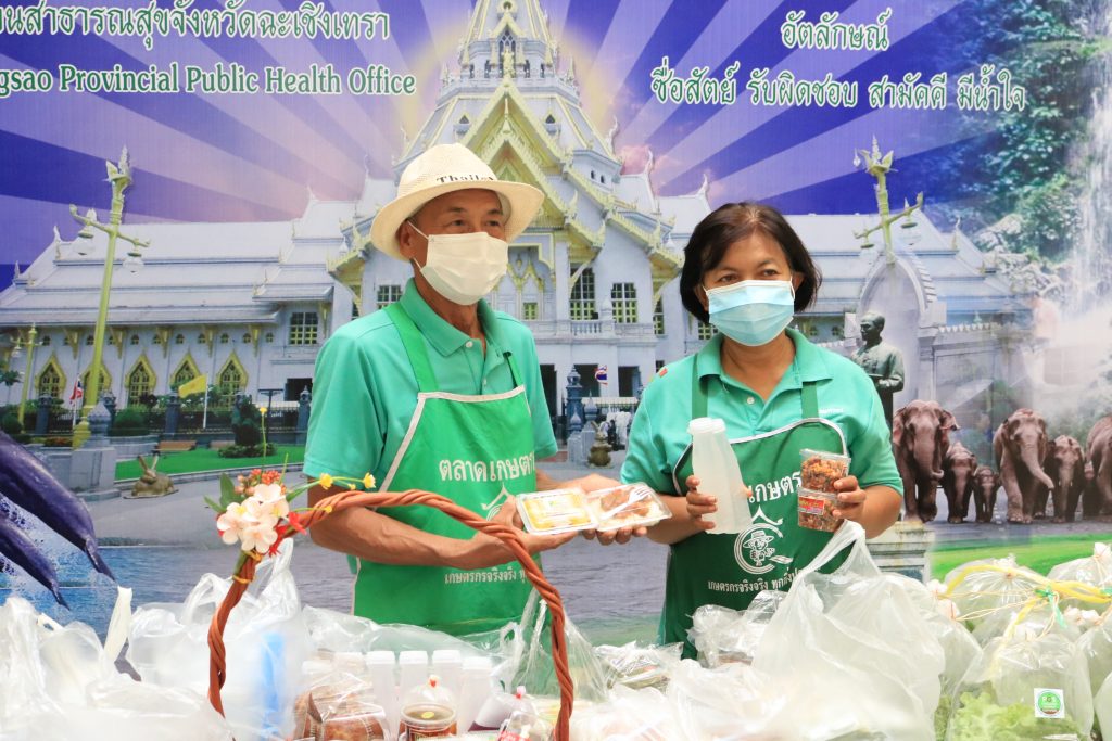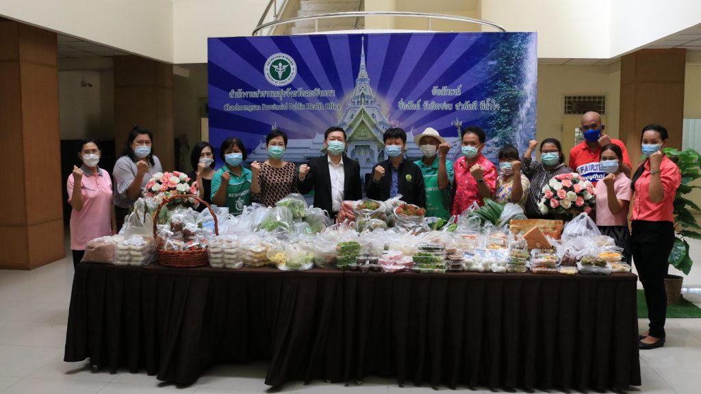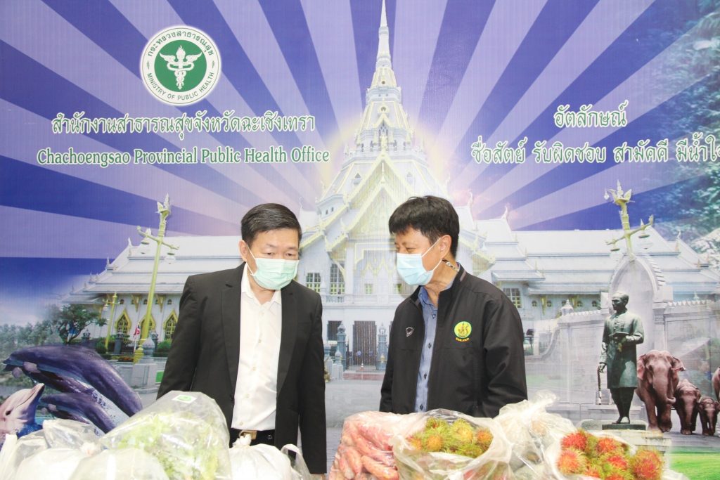 สำนักงานเกษตรจังหวัดฉะเชิงเทรา นำโดยนายดนัย ปัญจพิทยากุล เกษตรจังหวัดฉะเชิงเทรา ร่วมกับเกษตรกรผู้จำหน่ายสินค้าภายในตลาดเกษตรกรจังหวัดฉะเชิงเทรา และตลาดวิสาหกิจชุมชนจังหวัดฉะเชิงเทรา มอบผลผลิตทางการเกษตรให้กับสำนักงานสาธารณสุขจังหวัดฉะเชิงเทรา โดยมีนายแพทย์มณเฑียร คณาสวัสดิ์ สาธารณสุขจังหวัดฉะเชิงเทรา เป็นผู้แทนในการรับมอบผลผลิตทางการเกษตร และอาหารปรุงสำเร็จ สนับสนุนให้แก่บุคลากรทางการแพทย์ เพื่อเป็นขวัญกำลังใจในการปฏิบัติงานภายใต้สถานการณ์การแพร่ระบาดของโรคติดเชื้อไวรัสโคโรนา 2019 (Covid – 19) ตามโครงการ “แบ่งปันน้ำใจ เกษตรไทยสู้ภัยโควิด – 19” กรมส่งเสริมการเกษตรซึ่งมีวัตถุประสงค์ เพื่อให้ส่วนราชการในสังกัดกรมส่งเสริมการเกษตร เป็นศูนย์กลางในการประสานเชื่อมโยง การแบ่งปันสินค้าเกษตรจากเกษตรกรสู่บุคลากรทางการแพทย์ ประชาชนที่ได้รับผลกระทบจากการระบาดของโรค COVID-19 และผู้ทำหน้าที่ต่าง ๆ ในการดูแลประชาชน ป้องกัน ต่อสู้กับภัย COVID-19 ประชาสัมพันธ์สินค้าเกษตรที่มีคุณภาพไปสู่กลุ่มเป้าหมายให้แพร่หลายยิ่งขึ้น อีกทั้งเป็นขวัญกำลังใจให้กับผู้ที่ได้เสียสละทำหน้าที่ในการป้องกัน รักษาสุขภาพของประชาชน ต่อสู้ภัย COVID-19 และประชาชนที่ได้รับผลกระทบจากการระบาดของโรค COVID-19