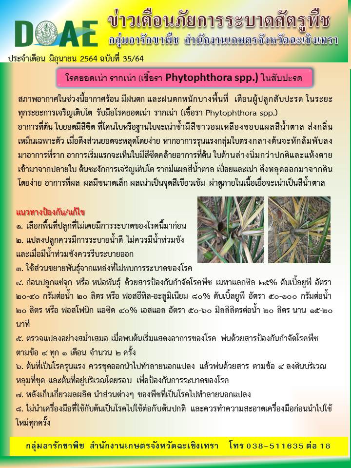 – โรคยอดเน่า รากเน่า (เชื้อรา Phytophthora spp.) ในสับปะรด