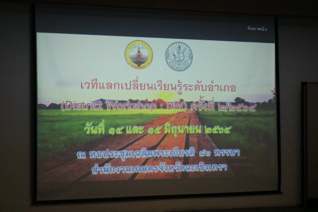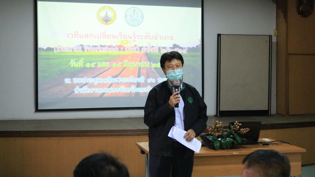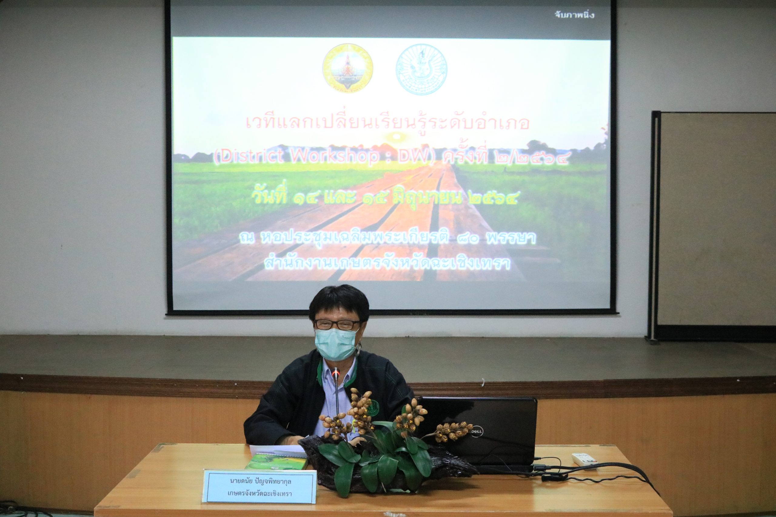 สำนักงานเกษตรจังหวัดฉะเชิงเทรา จัดเวทีแลกเปลี่ยนเรียนรู้ระดับอำเภอ (District Workshop : DW) ครั้งที่ 2/2564 ณ หอประชุมเฉลิมพระเกียรติ 80 พรรษา สำนักงานเกษตรจังหวัดฉะเชิงเทรา โดยในกิจกรรม ประกอบด้วย – การมอบนโยบายของเกษตรจังหวัดฉะเชิงเทรา โดยนายดนัย ปัญจพิทยากุล เกษตรจังหวัดฉะเชิงเทรา – การชี้แจงงานเร่งด่วนของกลุ่มอารักขาพืช โดยนายพิสิษฐ์ ยังให้ผล หัวหน้ากลุ่มอารักขาพืช และเจ้าหน้าที่กลุ่มอารักขาพืช – แนวทางการขึ้นทะเบียนเกษตรกร โดยนางสาววัชรี ป่างปู นักวิชาการส่งเสริมการเกษตรปฏิบัติการ เจ้าหน้าที่กลุ่มยุทธศาสตร์และสารสนเทศ – การปฏิบัติงานตามระบบส่งเสริมการเกษตร (T&V System) โดยนางสาวอาภาภรณ์ ชูเกียรติศิริ หัวหน้ากลุ่มยุทธศาสตร์และสารสนเทศ – ผู้แทนสำนักงานเกษตรอำเภอนำเสนอผลการดำเนินงานตามระบบส่งเสริมการเกษตร (T&V System) – เจ้าหน้าที่ทุกระดับระดมแนวความคิดในหัวข้อ“แนวทางการเบิกจ่ายงบประมาณระดับอำเภอของจังหวัดฉะเชิงเทรา ให้เป็นไปตามเป้าหมาย” เพื่อให้เจ้าหน้าที่ผู้เข้าร่วมกิจกรรมในทุกระดับเกิดการแลกเปลี่ยนเรียนรู้ เกิดความเข้าใจ สามารถปฏิบัติงานได้อย่างถูกต้องและมีประสิทธิภาพ