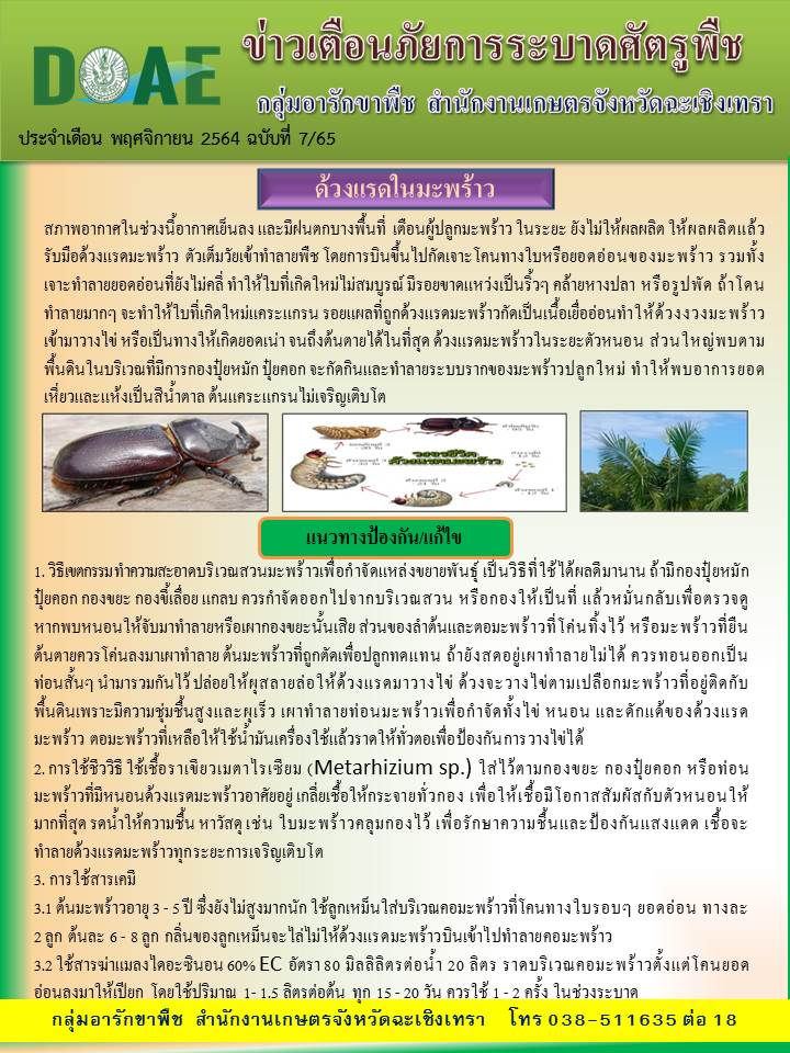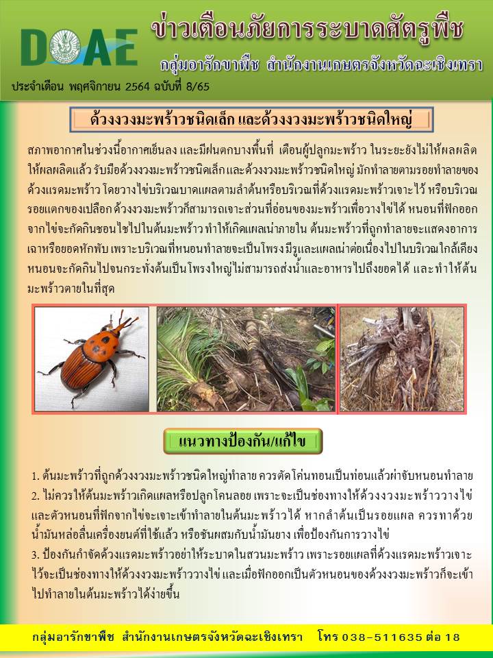 ในช่วงสภาพอากาศเย็นลง และมีฝนตกในบางพื้นที่ เกษตรแปดริ้วเตือน ระวัง โรคและแมลงศัตรูพืชระบาด