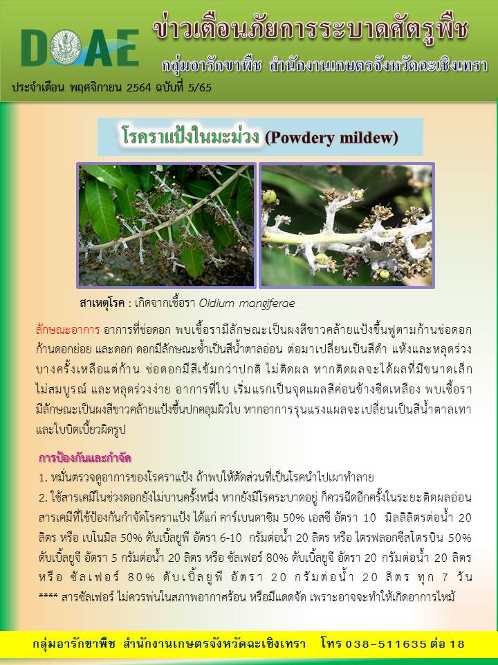 – โรคราแป้งในมะม่วง (Powdery mildew)