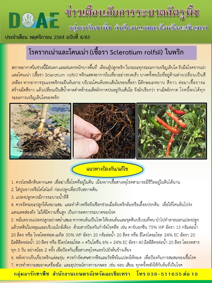 – โรครากเน่าและโคนเน่าในพริก (เชื้อรา Sclerotium rolfsii)