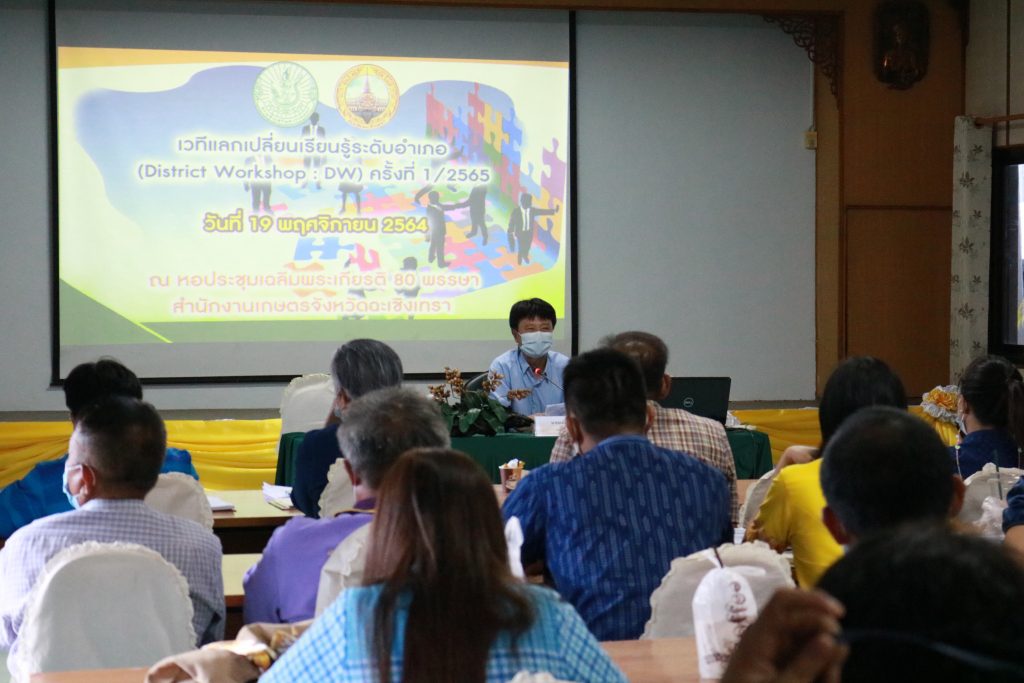 สำนักงานเกษตรจังหวัดฉะเชิงเทรา นำโดยนายดนัย ปัญจพิทยากุล เกษตรจังหวัดฉะเชิงเทรา เป็นประธานในการเปิดเวทีแลกเปลี่ยนเรียนรู้ระดับอำเภอ (District Workshop : DW) ครั้งที่ 1/2565 โดยมีเจ้าหน้าที่สำนักงานเกษตรจังหวัดฉะเชิงเทรา และสำนักงานเกษตรอำเภอ เข้าร่วมกิจกรรม ณ หอประชุมเฉลิมพระเกียรติ 80 พรรษา สำนักงานเกษตรจังหวัดฉะเชิงเทรา เพื่อรับทราบนโยบาย และแนวทางการดำเนินงานโครงการส่งเสริมการเกษตร ประจำปี พ.ศ. 2565 สร้างความเข้าใจแก่เจ้าหน้าที่ผู้ปฏิบัติงาน ให้สามารถปฏิบัติงานได้บรรลุตามวัตถุประสงค์ เกิดประสิทธิภาพ ความคุ้มค่าในการใช้จ่ายงบประมาณ และเป็นประโยชน์สูงสุดแก่เกษตรกรในพื้นที่