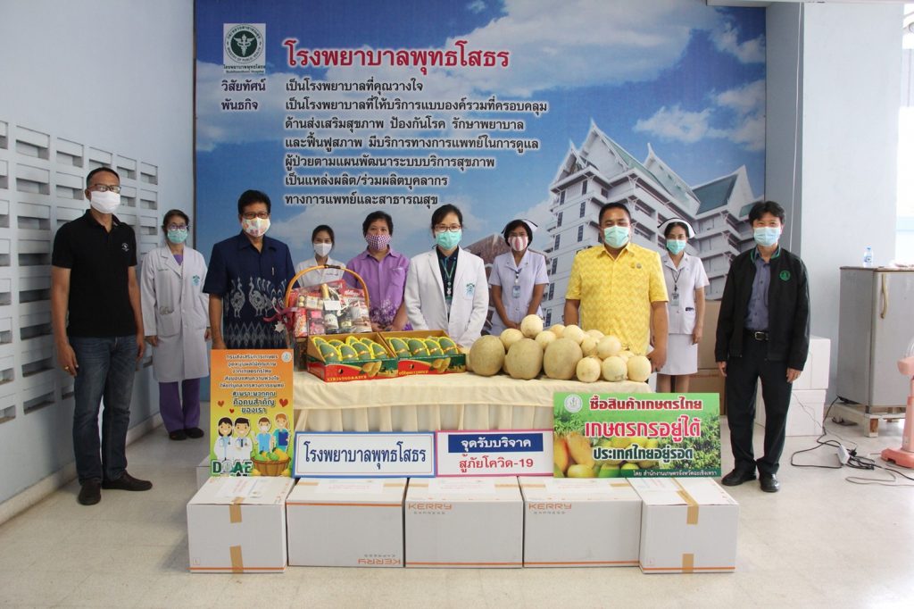 นายสรายุทธ แก้วกุลปรีชา รองผู้ว่าราชการจังหวัดฉะเชิงเทรา พร้อมด้วยนายดนัย ปัญจพิทยากุล เกษตรจังหวัดฉะเชิงเทรา และเจ้าหน้าที่สำนักงานเกษตรจังหวัดฉะเชิงเทรา เป็นตัวแทนในการมอบผลผลิตทางการเกษตร ได้แก่ มะม่วงเขียวเสวย จำนวน 2 กล่อง และแคนตาลูป จำนวน 100 กิโลกรัม ให้แก่แพทย์หญิง สมบัติ ชุติมานุกูล ผู้อำนวยการโรงพยาบาลพุทธโสธร เพื่อสนับสนุนการทำงาน และเป็นกำลังใจให้กับบุคลากรทางการแพทย์ ของโรงบาลพุทธโสธร ในการปฏิบัติงานให้บริการประชาชนในสถานการณ์ การแพร่ระบาดของโรคติดเชื้อไวรัสโคโรนา 2019 (COVID-19) ณ จุดรับบริจาคสู้ภัยโควิด-19 โรงพยาบาลพุทธโสธร
