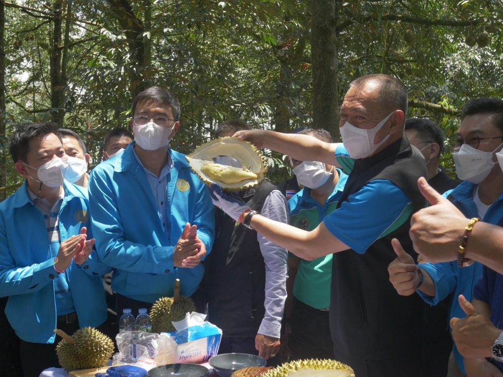 สำนักงานเกษตรจังหวัดฉะเชิงเทรา นำโดยนายดนัย ปัญจพิทยากุล เกษตรจังหวัดฉะเชิงเทรา ร่วมงานประชาสัมพันธ์ “ Estern Monthong Best Quality เปิดฤดูกาลหมอนทองภาคตะวันออกดีเลิศที่คุณภาพ ดีเยี่ยมเพื่อการส่งออก” ซึ่งจัดขึ้นโดยสำนักงานส่งเสริมและพัฒนาการเกษตรที่ 3 จังหวัดระยอง ร่วมกับสมาพันธ์ทุเรียนไทยภาคตะวันออก โดยมีนายเฉลิมชัย ศรีอ่อน รัฐมนตรีว่าการกระทรวงเกษตรและสหกรณ์ เป็นประธานในพิธีเปิด ณ สวนทุเรียนน้ำกร่อย อำเภอนายายอาม จังหวัดจันทบุรี เพื่อประชาสัมพันธ์ และสร้างความร่วมมือในการปฏิบัติตามมาตรการการป้องกันทุเรียนอ่อนและมาตรการ Zero COVID ซึ่งภายในงานประกอบด้วยนิทรรศการ ผลการดำเนินงานควบคุมทุเรียนอ่อนและทุเรียนด้อยคุณภาพ ออกสู่ตลาดภาคตะวันออก การแสดงผลผลิตทุเรียน GI ภาคตะวันออก จำนวน 6 ประเภท และชิมทุเรียน 7 สายพันธุ์Cr.ภาพ : กลุ่มโสตทัศนูปกรณ์ กรมส่งเสริมการเกษตร, สมาพันธ์ชาวสวนทุเรียนไทยภาคตะวันออก