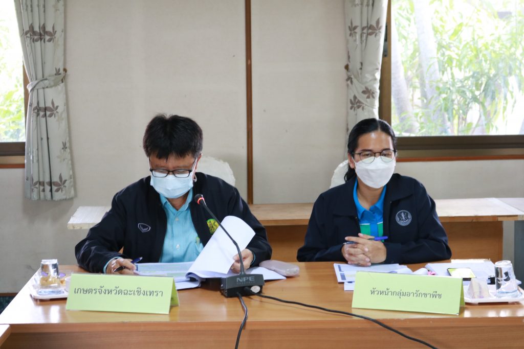 สำนักงานเกษตรจังหวัดฉะเชิงเทรา นำโดยนายดนัย ปัญจพิทยากุล เกษตรจังหวัดฉะเชิงเทรา พร้อมด้วยเจ้าหน้าที่สำนักงานเกษตรจังหวัดฉะเชิงเทรา จัดการประชุมคณะกรรมการโครงการคลินิกเกษตรเคลื่อนที่ในพระราชนุเคราะห์ ฯ ระดับจังหวัด ไตรมาสที่ 3 ปีงบประมาณ พ.ศ. 2565 โดยมีนายณัฐพงษ์ สวนจิตร รองผู้ว่าราชการจังหวัดฉะเชิงเทรา เป็นประธานในการประชุม พร้อมด้วยหัวหน้าส่วนราชการในสังกัดกระทรวงเกษตรที่รับผิดชอบพื้นที่จังหวัดฉะเชิงเทรา ผู้แทนสำนักงานเกษตรอำเภอบางคล้า และผู้เกี่ยวข้องเข้าร่วมการประชุม ณ หอประชุมเฉลิมพระเกียรติ 80 พรรษา สำนักงานเกษตรจังหวัดฉะเชิงเทรา เพื่อสรุปผล การดำเนินงานโครงการคลินิกเกษตรเคลื่อนที่ในพระราชานุเคราะห์ฯ ในไตรมาสที่ 2 วิเคราะห์ปัญหาและความต้องการของเกษตรกรในพื้นที่เป้าหมาย พร้อมร่วมวางแผนการจัดกิจกรรมในงานคลินิกเกษตรในพระราชานุเคราะห์ ฯ ไตรมาสที่ 3 ในวันที่ 14 มิถุนายน 2565 ณ โรงเรียนวัดสาวชะโงก หมู่ที่ 1 ตำบลสาวชะโงก อำเภอบางคล้า จังหวัดฉะเชิงเทรา ให้มีประสิทธิภาพ และเกิดประโยชน์สูงสุดต่อเกษตรกรผู้เข้าร่วมกิจกรรม