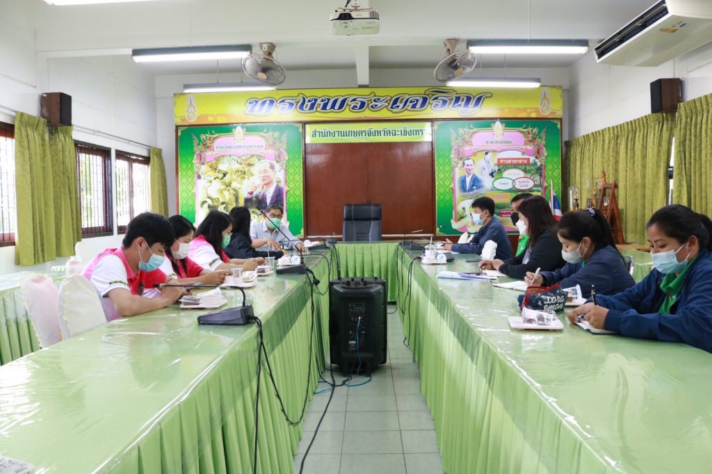 วันที่ 3 พฤศจิกายน 2565 นายดนัย ปัญจพิทยากุล เกษตรจังหวัดฉะเชิงเทรา เป็นประธานการประชุมสรุปผลการประชุมหารือแนวทางการจัดตั้งศูนย์รวบรวมผลผลิตทางการเกษตร โดยมีนายโอฬาร พิทักษ์ ที่ปรึกษาตลาดไท (อดีตอธิบดีกรมส่งเสริมการเกษตร) เข้าร่วมให้คำแนะนำแนวทางการจัดตั้งศูนย์ดังกล่าว และอาจารย์ดวงฤดี จำรัสธนสาร รองคณบดีวิชาการและวิจัย คณะวิทยาการจัดการ มหาวิทยาลัยราชภัฏราชนครินทร์และทีมงานและนายมงคลเกียรติ ควรกิจ ผู้จัดการฝ่ายสรรหาและพัฒนาสินค้าจากแหล่งผลิต (ตลาดไท)และทีมงาน เข้าร่วมสรุปผลแนวทางการบริหารจัดการการจัดตั้งศูนย์รวมรวบผลผลิตทางการเกษตรของกลุ่มวิสาหกิจชุมชนเห็ดและผักปลอดสารพิษบ้านหนองหว้า ตำบลบ้านซ่อง อำเภอพนมสารคาม จังหวัดฉะเชิงเทรา ณ ห้องประชุมสำนักงานเกษตรจังหวัดฉะเชิงเทรา ทั้งนี้เจ้าหน้าที่กลุ่มส่งเสริมและพัฒนาการผลิตเข้าร่วมประชุมดังกล่าวด้วย