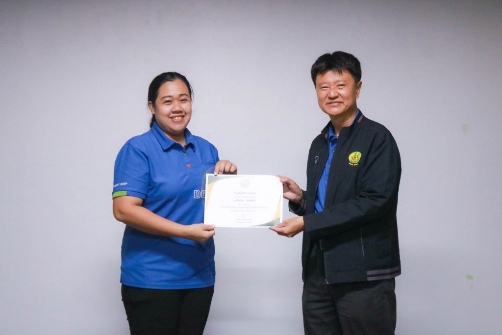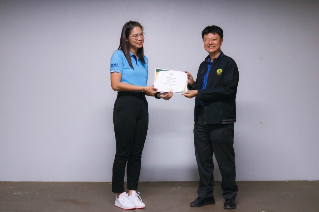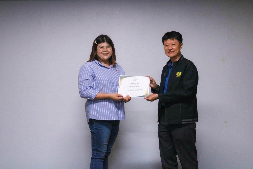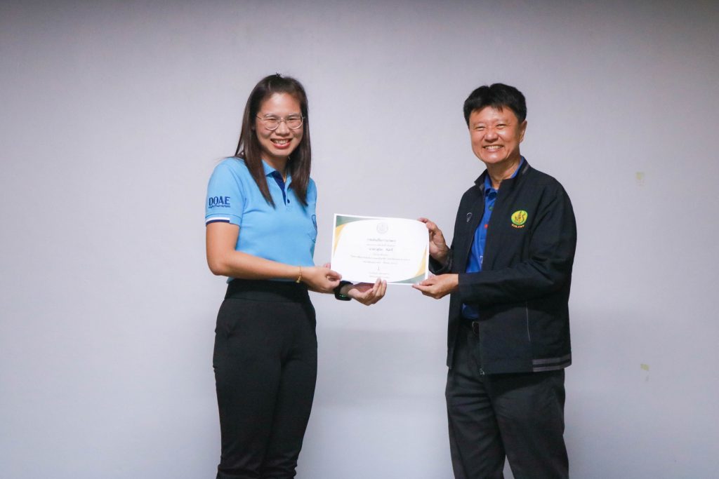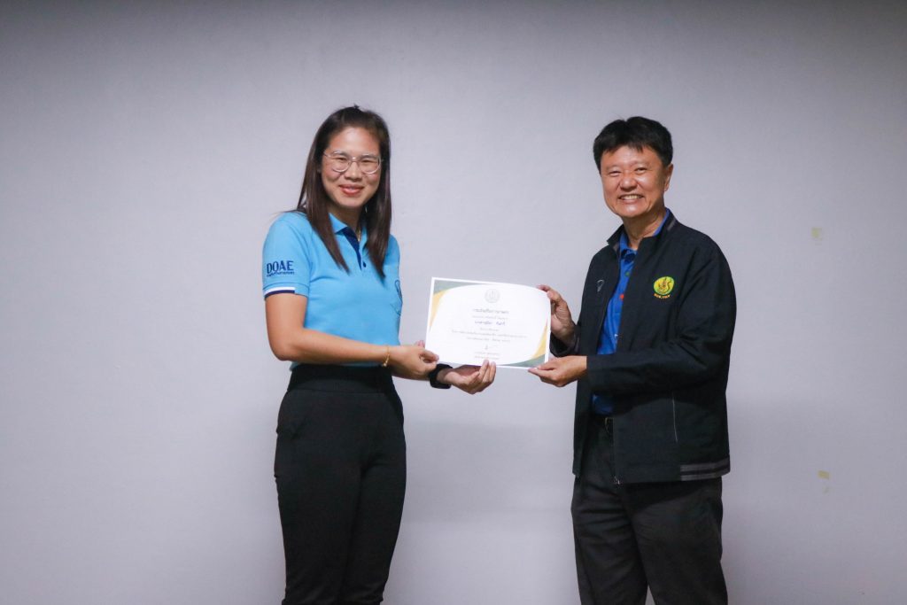 – นายดนัย ปัญจพิทยากุล เกษตรจังหวัดฉะเชิงเทรา เป็นผู้แทนมอบประกาศนียบัตรเป็นขวัญกำลังใจให้กับผู้ผ่านการอบรมโครงการพัฒนานักส่งเสริมการเกษตรมืออาชีพ ประจำปี 2565