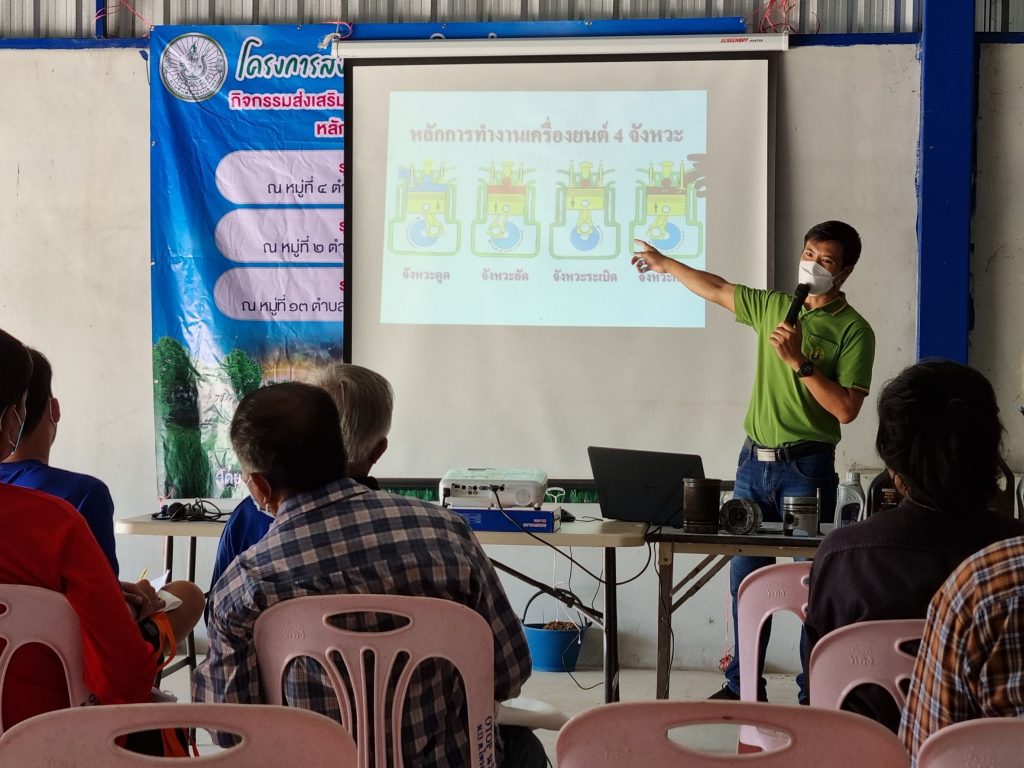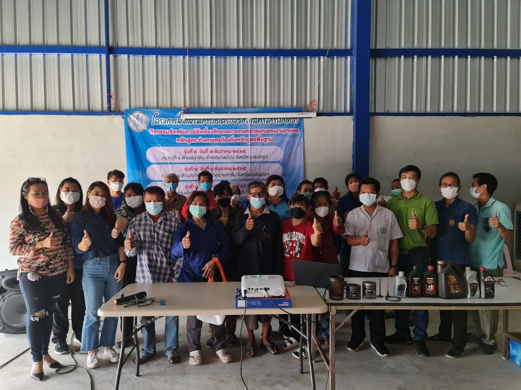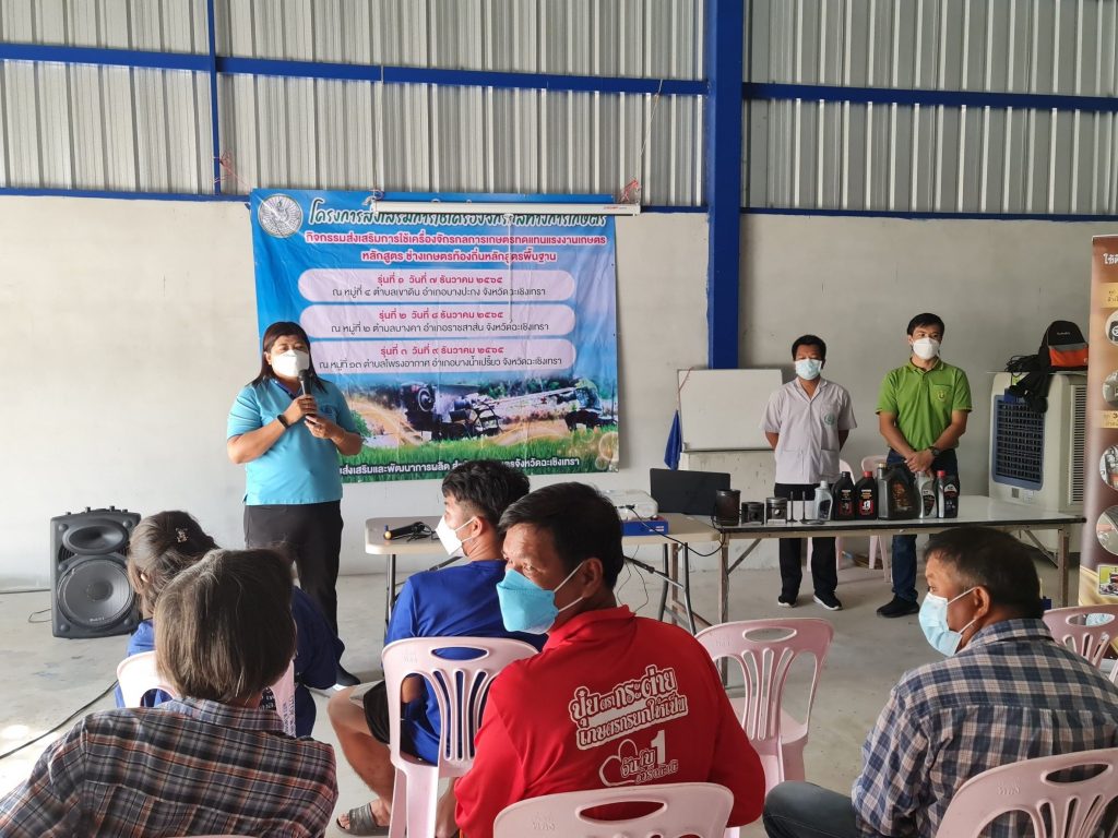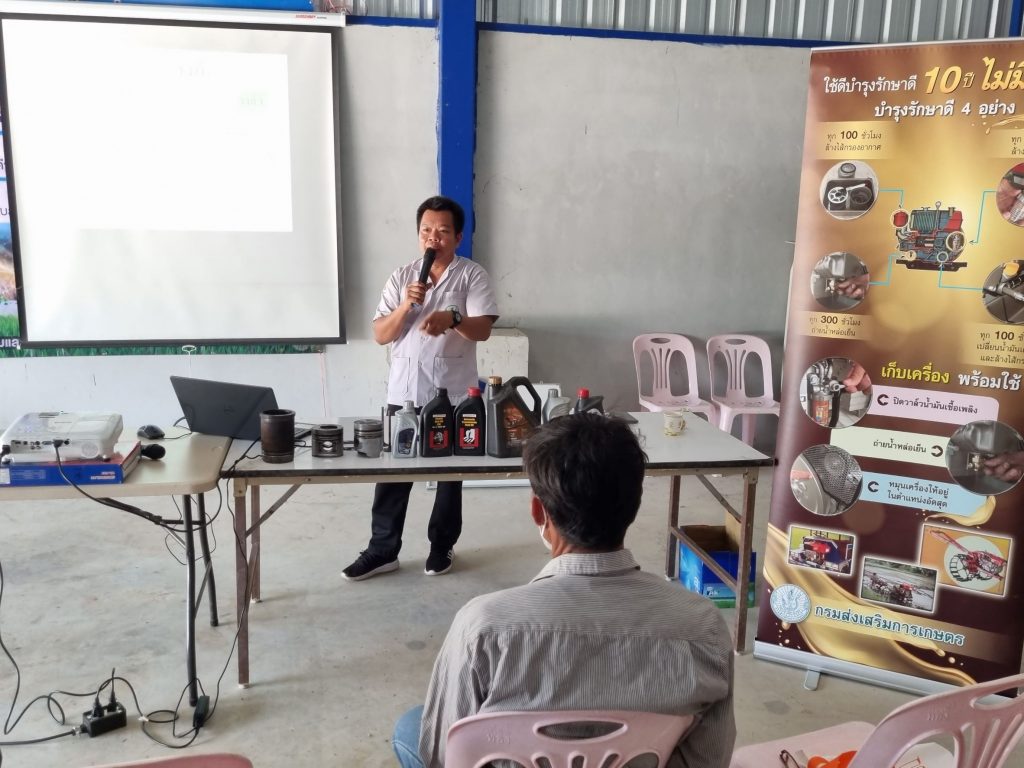 สำนักงานเกษตรจังหวัดฉะเชิงเทรา โดยนายดนัย ปัญจพิทยากุล เกษตรจังหวัดฉะเชิงเทรา มอบหมายให้นางสาวอังคณา นาเมืองรักษ์ นักวิชาการส่งเสริมการเกษตรชำนาญการ รักษาราชการในตำแหน่งหัวหน้ากลุ่มส่งเสริมและพัฒนาการผลิต พร้อมด้วยเจ้าหน้าที่กลุ่มส่งเสริมและพัฒนาการผลิต ร่วมกับเจ้าหน้าที่จากสำนักงานเกษตรอำเภอบางน้ำเปรี้ยว จัดอบรมเกษตรกร กิจกรรมสร้างช่างเกษตรท้องถิ่นหลักสูตรพื้นฐาน รุ่นที่ 3 ภายใต้โครงการส่งเสริมการใช้เครื่องจักรกลทางการเกษตร ปี 2566 ณ หมู่ที่ 13 ตำบลโพรงอากาศ อำเภอบางน้ำเปรี้ยว จังหวัดฉะเชิงเทราเกษตรกรเข้ารับการอบรม จำนวน 25 ราย โดยมี นายศราวุฒิ หมวดชาลี นายช่างเครื่องกลปฏิบัติการ และนายคณาวุฒิ พันธนะบุญ วิศวกรการเกษตรปฏิบัติการ เจ้าหน้าที่จาก กองส่งเสริมโครงการพระราชดำริ การจัดการพื้นที่และวิศวกรรมเกษตร กรมส่งเสริมการเกษตร มาเป็นวิทยากรให้ความรู้เรื่องการใช้และการบำรุงรักษาเครื่องยนต์ทางการเกษตรที่ถูกต้อง เพื่อยืดอายุการใช้งานและเกษตรกรสามารถซ่อมบำรุงเครื่องจักรกลทางการเกษตรของตนเองได้เบื้องต้น ซึ่งเป็นการช่วยลดค่าใช้จ่าย ในการซ่อมแซมเครื่องยนต์ทางการเกษตร