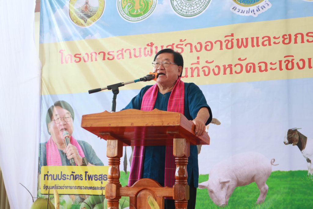 สำนักงานเกษตรจังหวัดฉะเชิงเทรา โดยนายดนัย ปัญจพิทยากุล เกษตรจังหวัดฉะเชิงเทรา มอบหมายให้นางสาวอาภาภรณ์ ชูเกียรติศิริ หัวหน้ากลุ่มยุทธศาสตร์และสารสนเทศ ร่วมให้ข้อมูลทางเลือกการสร้างอาชีพเกษตรด้านพืช ในการเสวนา “โครงการสานฝันสร้างอาชีพและยกระดับรายได้เกษตรกร” โดยมีนายประภัตร โพธสุธน รัฐมนตรีช่วยว่าการกระทรวงเกษตรและสหกรณ์ เป็นประธาน พร้อมด้วยนายขจรเกียรติ รักพานิชมณี ผู้ว่าราชการจังหวัดฉะเชิงเทรา และหัวหน้าส่วนราชการในสังกัดกระทรวงเกษตรและสหกรณ์ที่เกี่ยวข้อง และเกษตรกร เข้าร่วมการเสวนา ณ โดมอเนกประสงค์ ด้านหน้าอาคารประชาคมวัดสมานรัตนาราม ตำบลบางแก้ว อำเภอเมืองฉะเชิงเทรา จังหวัดฉะเชิงเทรา เพื่อชี้แจงแนวทางการดำเนินงานโครงการสานฝันสร้างอาชีพและยกระดับรายได้เกษตรกร โดยขอรับเงินทุนในการสร้างงานสร้างอาชีพ หรือประกอบอาชีพเกษตรกรรม ตามหลักปรัชญาเศรษฐกิจพอเพียง ให้กับเกษตรกรผู้เข้าร่วมกิจกรรมเป้าหมาย จำนวน 500 ราย