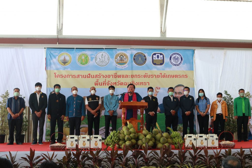 โครงการสานฝันสร้างอาชีพและยกระดับรายได้เกษตรกร ถือเป็นความตั้งใจของพลเอก ประยุทธ์ จันทร์โอชา นายกรัฐมนตรี ที่เน้นช่วยเหลือประชาชนให้มีรายได้เพิ่มขึ้น โดยส่งเสริมให้ประชาชนสามารถเข้าถึงแหล่งเงินทุนเพื่อนำไปต่อยอดสร้างอาชีพเลี้ยงตนเองและครอบครัว กระตุ้นเศรษฐกิจของประเทศให้ฟื้นตัวจากสถานการณ์โควิด-19 ได้ต่อไป ซึ่งแนวทางการสร้างอาชีพภาคการเกษตรที่เหมาะสมในพื้นที่จังหวัดฉะเชิงทราตามโครงการ แบ่งเป็น 1. ด้านพืช ประกอบด้วย แตงโม ข้าวโพดหวาน แตงกวา 2. ด้านประมง ประกอบด้วย ปลานิล กุ้งก้ามกราม 3. ด้านปศุสัตว์ ประกอบด้วย โคเนื้อ แพะ ไก่ไข่