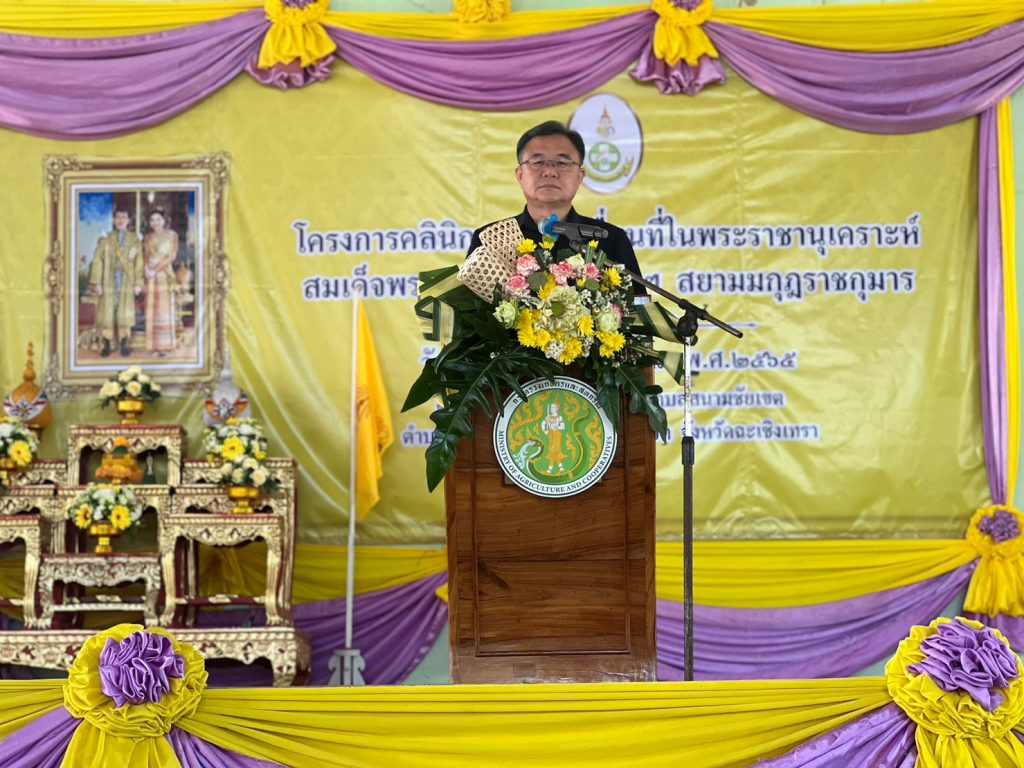 เกษตรแปดริ้ว จัดโครงการคลินิกเกษตรเคลื่อนที่ในพระราชานุเคราะห์ สมเด็จพระบรมโอรสาธิราชสยามมกุฎราชกุมาร ปีงบประมาณ พ.ศ. 2566 ไตรมาส 1 สำนักงานเกษตรจังหวัดฉะเชิงเทรา นำโดยนายดนัย ปัญจพิทยากุล เกษตรจังหวัดฉะเชิงเทรา พร้อมด้วยเจ้าหน้าที่สำนักงานเกษตรจังหวัดฉะเชิงเทรา ร่วมกับสำนักงานเกษตรอำเภอสนามชัยเขตจัดโครงการคลินิกเกษตรเคลื่อนที่ในพระราชานุเคราะห์ สมเด็จพระบรมโอรสาธิราชสยามมกุฎราชกุมาร ปีงบประมาณ พ.ศ. 2566 ไตรมาส 1 โดยมีนายขจรเกียรติ รักพานิชมณี ผู้ว่าราชการจังหวัดฉะเชิงเทรา เป็นประธานในพิธีเปิด พร้อมด้วยส่วนราชการในสังกัดกระทรวงเกษตรและสหกรณ์ และหน่วยงานที่เกี่ยวข้องเข้าร่วมให้บริการแก่เกษตรกรณ สนามกีฬาเทศบาลตำบลสนามชัยเขต ตำบลคู้ยายหมี อำเภอสนามชัยเขต จังหวัดฉะเชิงเทรา เพื่อให้คำแนะนำ สนับสนุนองค์ความรู้ และวัสดุให้บริการ แก้ไขปัญหาด้านการเกษตรให้แก่เกษตรกรในรูปแบบบูรณาการ ณ จุดเดียว ซึ่งในการจัดงานมีเกษตรกรเข้าร่วมกิจกรรม จำนวน 343 ราย