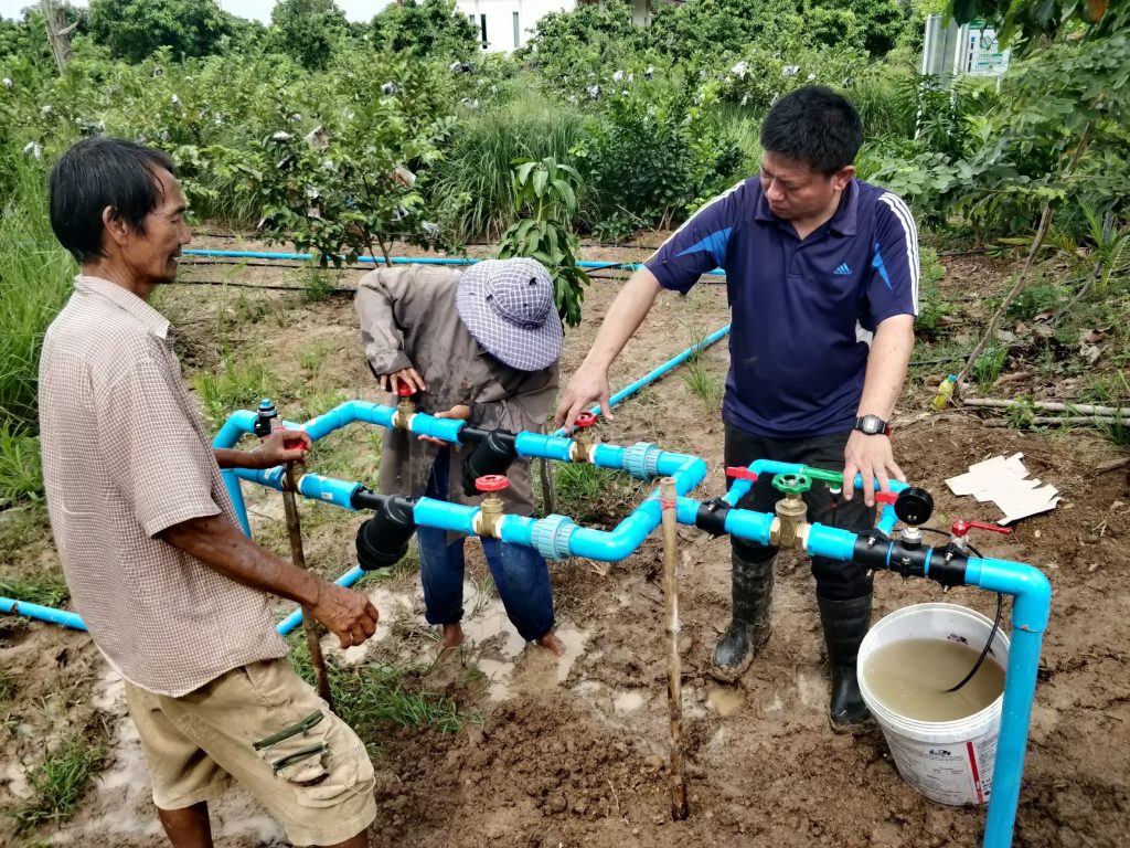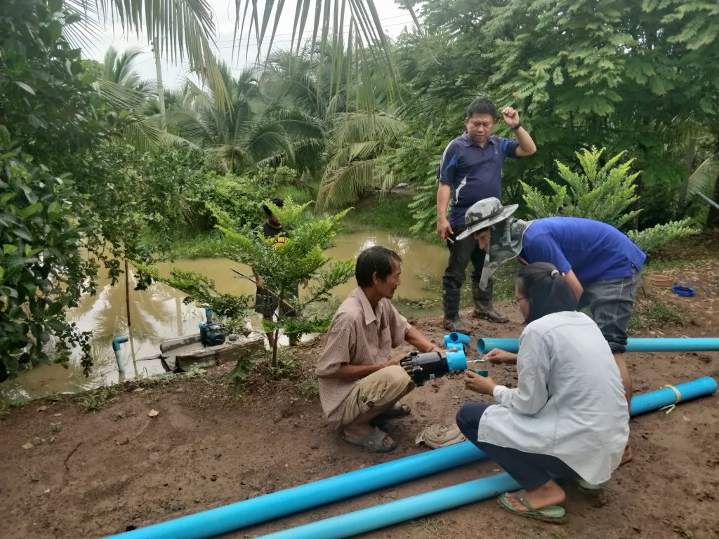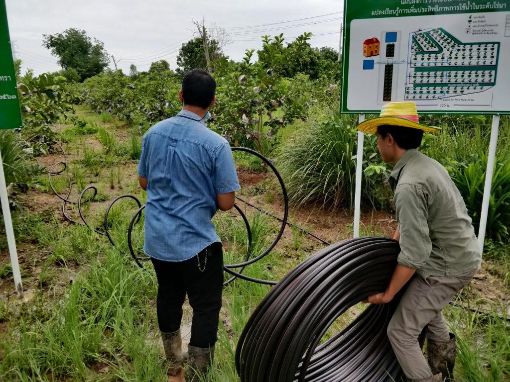 วันที่ 20-21 สิงหาคม 2563 นายดนัย ปัญจพิทยากุล เกษตรจังหวัดฉะเชิงเทรา มอบหมายให้นางสาวทัศนีย์ ครุฑพิชัย นักวิชาการส่งเสริมการเกษตรชำนาญการ และนายศุภมิตร ส่องแสงจันทร์ นักวิชาการส่งเสริมการเกษตรปฏิบัติการ ร่วมกับเจ้าหน้าที่จากสำนักงานเกษตรอำเภอราชสาส์น จัดทำแปลงเรียนรู้การเพิ่มประสิทธิภาพการใช้น้ำในระดับไร่นา ของเกษตรต้นแบบ (นางสาวพัทธนันท์ คชสีห์) ตำบลบางคา อำเภอราชสาส์น จังหวัดฉะเชิงเทรา โดยเป็นการวางระบบน้ำแบบไมโครสเปรย์ ในสวนไม้ผล จำนวน 4 ไร่ เพื่อเป็นจุดเรียนรู้ให้แก่เกษตรกรที่สนใจเข้ามาศึกษาดูงาน ในการนี้ได้รับความอนุเคราะห์จากกองส่งเสริมโครงการพระราชดำริ การจัดการพื้นที่และวิศวกรรมเกษตร มอบหมายให้คุณพีระ ช้างเยาว์ หัวหน้าฝ่ายบริการงานช่างเกษตรและทีมงาน มาเป็นที่ปรึกษาและช่วยวางระบบการให้น้ำในแปลงเรียนรู้ในครั้งนี้ด้วย
