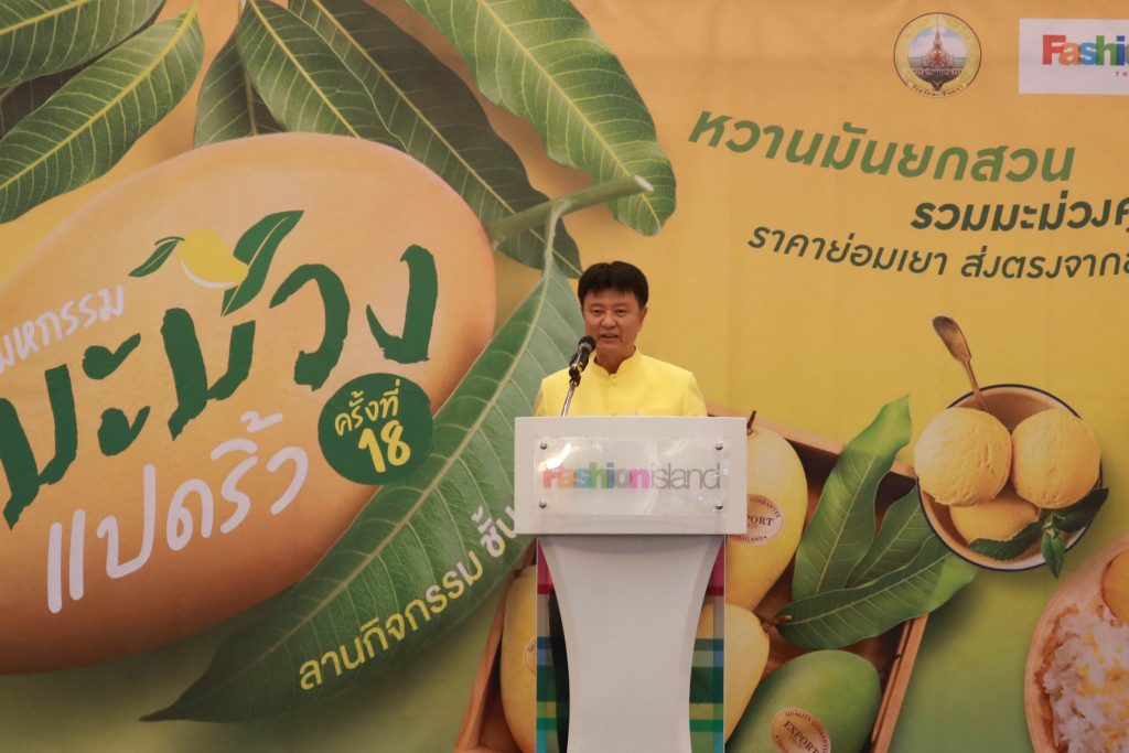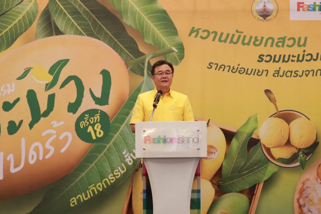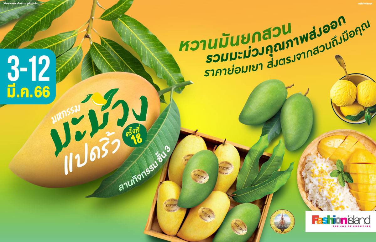 สำนักงานเกษตรจังหวัดฉะเชิงเทรา นำโดยนายดนัย ปัญจพิทยากุล เกษตรจังหวัดฉะเชิงเทรา พร้อมด้วยเจ้าหน้าที่สำนักงานเกษตรจังหวัดฉะเชิงเทรา เข้าร่วมพิธีเปิดงาน “มหกรรมมะม่วงแปดริ้ว ครั้งที่ 18” โดยมีนายขจรเกียรติ รักพานิชมณี ผู้ว่าราชการจังหวัดฉะเชิงเทรา เป็นประธาน พร้อมด้วยหัวหน้าส่วนราชการในสังกัดกระทรวงเกษตรและสหกรณ์ ผู้ช่วยกรรมการผู้จัดการ ศูนย์การค้าแฟชั่นไอส์แลนด์ ผู้แทนชมรมชาวสวนมะม่วงจังหวัดฉะเชิงเทรา จำกัด ผู้แทนวิสาหกิจชุมชนผู้ผลิตมะม่วงส่งออกจังหวัดฉะเชิงเทรา และแขกผู้มีเกียรติเข้าร่วมพิธีเปิดงาน ณ ลานกิจกรรมด้านหน้า Food Island ชั้น 3 ศูนย์การค้าแฟชั่นไอส์แลนด์ แขวงคันนายาว เขตคันนายาว กรุงเทพมหานคร โดยงาน “มหกรรมมะม่วงแปดริ้ว ครั้งที่ 18” กำหนดจัดขึ้นระหว่างวันที่ 3 – 12 มีนาคม 2566 ณ ศูนย์การค้าแฟชั่นไอส์แลนด์ เพื่อส่งเสริมและสนับสนุนให้เกษตรกรชาวสวนได้จำหน่ายผลผลิตมะม่วงและผลิตภัณฑ์แปรรูปแก่ผู้บริโภคโดยตรง ซึ่งมีเกษตรกรร่วมจำหน่ายสินค้า จำนวน 34 บูธ