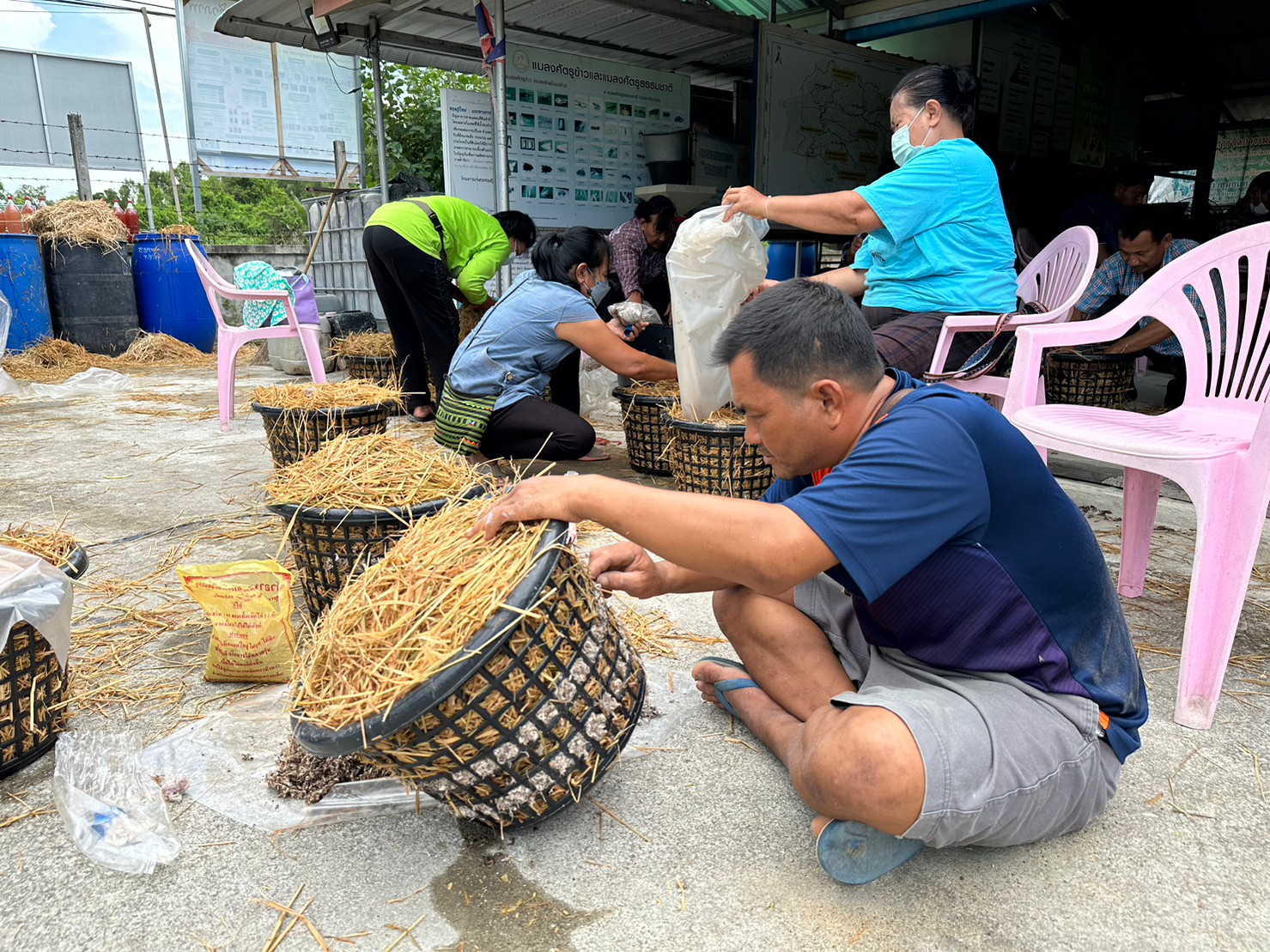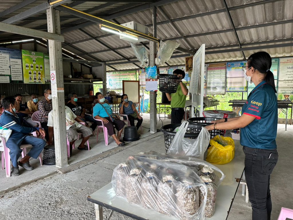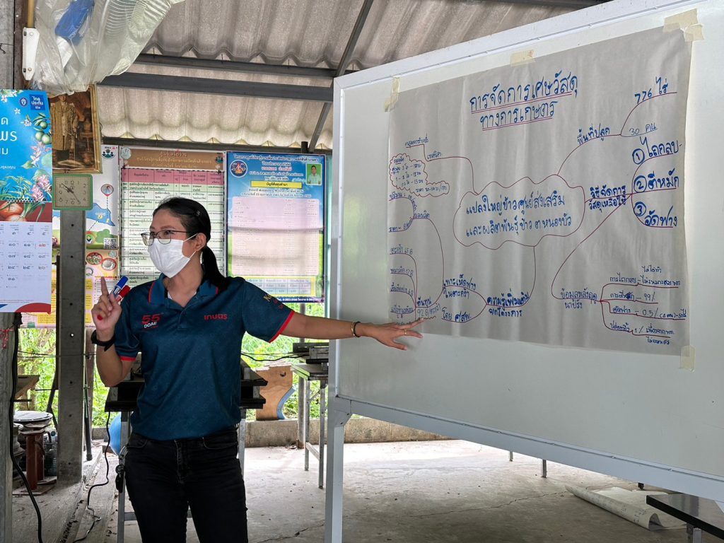 สำนักงานเกษตรจังหวัดฉะเชิงเทรา โดยนายดนัย ปัญจพิทยากุล เกษตรจังหวัดฉะเชิงเทรา มอบหมายให้นางสาวอาภาภรณ์ ชูเกียรติศิริ หัวหน้ากลุ่มยุทธศาสตร์และสารสนเทศ พร้อมด้วยเจ้าหน้าที่กลุ่มยุทธศาสตร์และสารสนเทศ สำนักงานเกษตรจังหวัดฉะเชิงเทรา ร่วมกับสำนักงานเกษตรอำเภอบ้านโพธิ์ จัดเวทีชุมชน ครั้งที่ 3 ตามโครงการสร้างมูลค่าเพิ่มจากวัสดุเหลือใช้ทางการเกษตร โดยมีเกษตรกรเป้าหมายเข้าร่วมกิจกรรม จำนวน 40 ราย ณ ที่ทำการกลุ่มแปลงใหญ่ข้าว (ศูนย์ส่งเสริมและผลิตพันธุ์ข้าวตำบลหนองบัว) หมู่ที่ 1 ตำบลหนองบัว อำเภอบ้านโพธิ์ จังหวัดฉะเชิงเทรา เพื่อสรุปข้อมูลจากการวิเคราะห์สถานการณ์ด้านการเกษตรของชุมชน พร้อมสรุปผลการดำเนินงาน ปัญหา/อุปสรรคของโครงการ และหาแนวทางการจัดการเพิ่มมูลค่าจากวัสดุเหลือใช้ทางการเกษตรที่เหมาะสมกับพื้นที่ต่อไป