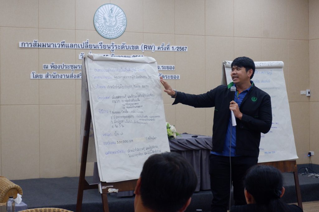 วันที่ 14 – 15 ธันวาคม 2566 นายดนัย ปัญจพิทยากุล เกษตรจังหวัดฉะเชิงเทรา มอบหมายให้นางสาวอาภาภรณ์ ชูเกียรติศิริ หัวหน้ากลุ่มยุทธศาสตร์และสารสนเทศ และนางวิภา จิระวัฒน์ หัวหน้ากลุ่มอารักขาพืช พร้อมด้วยผู้แทนกลุ่มงาน สำนักงานเกษตรจังหวัดฉะเชิงเทรา เข้าร่วมการสัมมนาเวทีแลกเปลี่ยนเรียนรู้ระดับเขต (RW) ครั้งที่ 1/2567 โดยมีนายกฤษ อุตตมะเวทิน รองอธิบดีกรมส่งเสริมการเกษตร เป็นประธานในพิธีเปิด พร้อมด้วยผู้แทนสำนักส่งเสริมและพัฒนาการเกษตรที่ 3 จังหวัดระยอง และผู้แทนสำนักงานเกษตรจังหวัดในภาคตะวันออก เข้าร่วมกิจกรรม ณ โรงแรมสตาร์ คอนเวนชั่น ระยอง อำเภอเมืองระยอง จังหวัดระยอง เพื่อให้เจ้าหน้าที่ส่งเสริมการเกษตรทุกระดับมีการแลกเปลี่ยนความรู้ พัฒนาการดำเนินงาน ทำให้เกิดความรู้ความสามารถและมีความพร้อมในการถ่ายทอดความรู้ และให้บริการทางการเกษตรแก่เกษตรกร