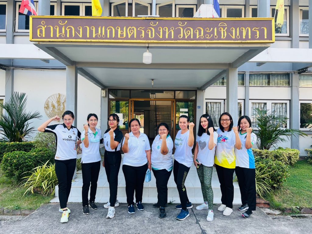 สำนักงานเกษตรจังหวัดฉะเชิงเทรา นำโดยนายดนัย ปัญจพิทยากุล เกษตรจังหวัดฉะเชิงเทรา ส่งเจ้าหน้าที่เข้าร่วมกิจกรรมออกกำลังกาย เต้นแอโรบิค แข่งขันแชร์บอล โดยเป็นการพบกันระหว่างทีมสีขาว (สำนักงานเกษตรจังหวัดฉะเชิงเทรา ร่วมกับสำนักงานสาธารณสุขจังหวัด ท่องเที่ยวและกีฬาจังหวัด และสำนักงานสรรพากรพื้นที่จังหวัด) และทีมสีส้ม (สำนักงานพัฒนาสังคมสและความมั่นคงของมนุษย์จังหวัด สำนักงานโยธานธิการและผังเมืองจังหวัด และสำนกงานป้องกันและบรรเทาสาธารณภัยจังหวัด) งานนี้สนุก ได้สุขภาพ และยังช่วยสร้างสัมพันธ์ที่ดีระหว่างหน่วยงานอีกด้วย