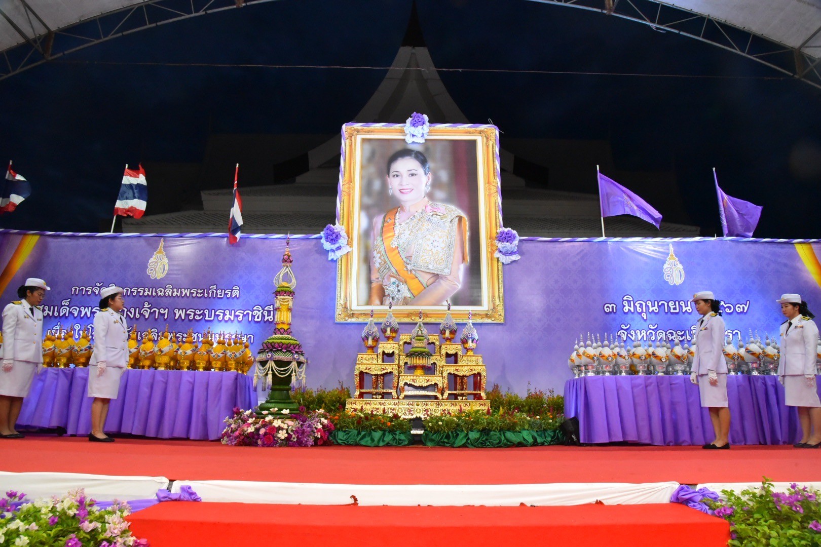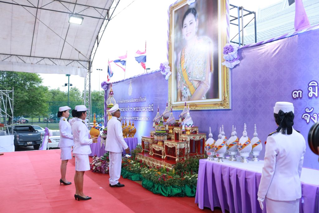 วันที่ 3 มิถุนายน 2567 เวลา 17.30 น. นายดนัย ปัญจพิทยากุล เกษตรจังหวัดฉะเชิงเทรา มอบหมายให้นางสาวทัศนีย์ ครุฑพิชัย พร้อมด้วยเจ้าหน้าที่สำนักงานเกษตรจังหวัดฉะเชิงเทรา เข้าร่วมพีธี ถวายเครื่องราชสักการะและวางพานพุ่ม และพิธีจุดเทียนถวายพระพรชัยมงคล เนื่องในโอกาสเฉลิมพระชนมพรรษา ครบ 46 พรรษา สมเด็จพระนางเจ้าสุทิดา พัชรสุธาพิมลลักษณ พระบรมราชินี 3 มิถุนายน 2567 โดยมีนายชลธี ยังตรง ผู้ว่าราชการจังหวัดฉะเชิงเทรา เป็นประธาน พร้อมด้วยส่วนราชการ หน่วยงานรัฐวิสาหกิจ และสถาบันการศึกษา เข้าร่วมพิธี ณ บริเวณหน้าศาลาจัตุรมุข หน้าศาลากลางจังหวัดฉะเชิงเทรา ตำบลหน้าเมือง อำเภอเมืองฉะเชิงเทรา จังหวัดฉะเชิงเทรา เพื่อแสดงออกถึงความจงรักภักดีและสำนึกในพระมหากรุณาธิคุณของสมเด็จพระนางเจ้าฯ พระบรมราชินี