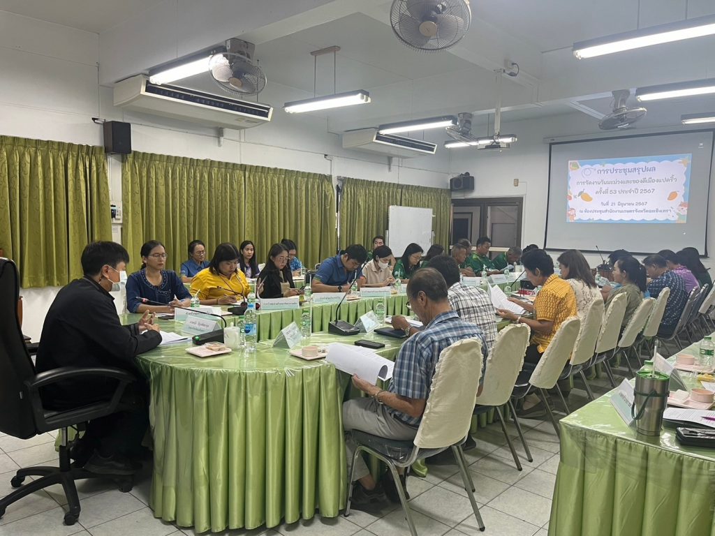 วันที่ 21 มิถุนายน 2567 เวลา 10.00 น. นายดนัย ปัญจพิทยากุล เกษตรจังหวัดฉะเชิงเทรา เป็นประธานการประชุมสรุปผลการจัดงานวันมะม่วงและของดีเมืองแปดริ้ว ครั้งที่ 53 ประจำปี 2567 โดยมี นายมานพ แก้ววงษ์นุกูล ประธานวิสาหกิจชุมชนมะม่วงส่งออกอำเภอบางคล้าจังหวัดฉะเชิงเทรา นายกระจ่าง จำศักดิ์ ประธานสหกรณ์ชมรมชาวสวนมะม่วงจังหวัดฉะเชิงเทราจำกัด หัวหน้า/ผู้แทนส่วนราชการที่เกี่ยวข้อง หัวหน้ากลุ่ม/ผู้แทน หัวหน้าฝ่ายบริหารทั่วไป เกษตรอำเภอทุกอำเภอ และเจ้าหน้าที่สำนักงานเกษตรจังหวัดฉะเชิงเทราเข้าร่วมประชุม วัตถุประสงค์เพื่อสรุปผลจัดงานวันมะม่วงและ ของดีเมืองแปดริ้ว ครั้งที่ 53 ประจำปี 2567 พร้อมหารือ ปัญหา อุปสรรค และแนวทางแก้ไข เพื่อนำไปใช้ปรับปรุงพัฒนา การจัดงานวันมะม่วงและของดีเมืองแปดริ้วในครั้งต่อไปให้ดียิ่งขึ้น ณ ห้องประชุมสำนักงานเกษตรจังหวัดฉะเชิงเทรา