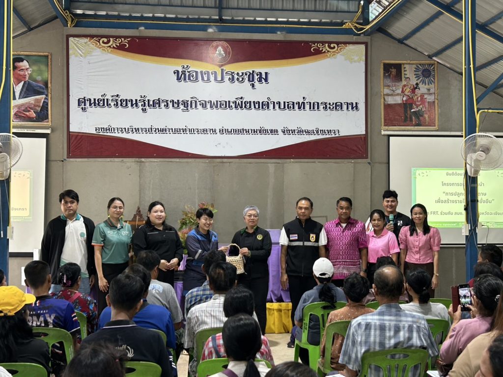 วันที่ 19 สิงหาคม 2568 เวลา 09.00-12.00 น. นางอัญชนะ เกงขุนทด เกษตรอำเภอสนามชัยเขต พร้อมด้วยเจ้าหน้าที่สำนักงานเกษตรอำเภอสนามชัยเขต บูรณาการร่วมกับองค์การบริหารส่วนตำบลท่ากระดาน และบริษัทฟิวเจอร์รีซอร์สดั๊บเบิ้ลเอ จัดอบรม“การปลูกต้นกระดาษเพื่อสร้างรายได้อย่างยั่งยืน” เพื่อเพิ่มรายได้และสร้างความมั่นคงให้กับเกษตรกรในพื้นที่จังหวัดฉะเชิงเทรา และแลกเปลี่ยนความรู้ด้านการเกษตร เพื่อสร้างเกษตรกรในระบบการเกษตรที่ยั่งยืนและสร้างรายได้ในระยะยาว โดยมีเกษตรเข้าร่วมจำนวน 45 ราย ณ ศูนย์เรียนรู้เศรษฐกิจพอเพียงตำบลท่ากระดาน หมู่ที่ 13 บ้านนา ตำบลท่ากระดาน อำเภอสนามชัยเขต จังหวัดฉะเชิงเทรา