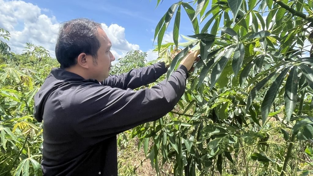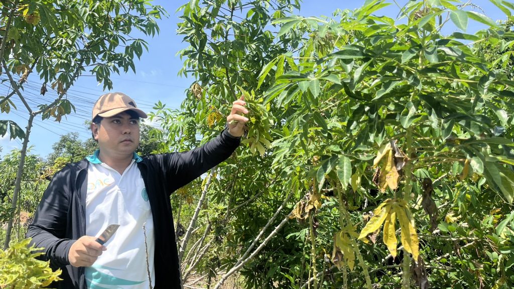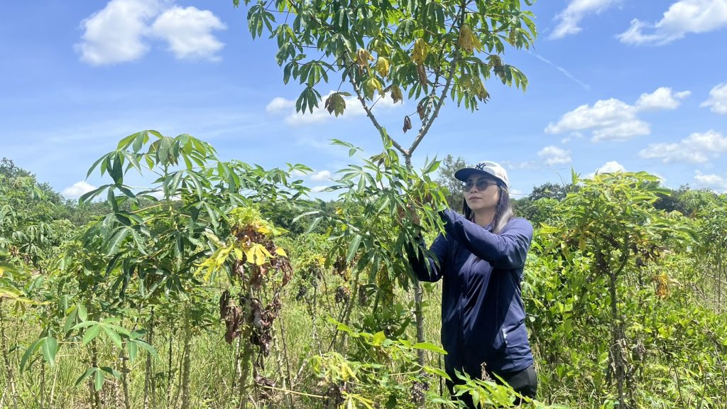 วันที่ 7 ตุลาคม 2568 เวลา 10.00-12.00 น. นางอัญชนะ เกงขุนทด เกษตรอำเภอสนามชัยเขต มอบหมายให้เจ้าหน้าที่สำนักงานเกษตรอำเภอสนามชัยเขต ลงพื้นที่แปลงมันสำปะหลังในพื้นที่อำเภอสนามชัยเขต เพื่อสำรวจโรคไวรัสใบด่างมันสำปะหลังที่แพร่ระบาดในพื้นที่ และได้สุ่มเก็บตัวอย่างใบมันสำปะหลัง จำนวน 10 ตัวอย่าง เพื่อนำไปทดสอบโรคไวรัสใบด่างมันสำปะหลัง โดยใช้ชุดตรวจ SLCMV Strip Test เป็นลำดับถัดไป ณ หมู่ที่ 1 ตำบลลาดกระทิง และหมู่ที่ 4 ตำบลคู้ยายหมี อำเภอสนามชัยเขต จังหวัดฉะเชิงเทรา