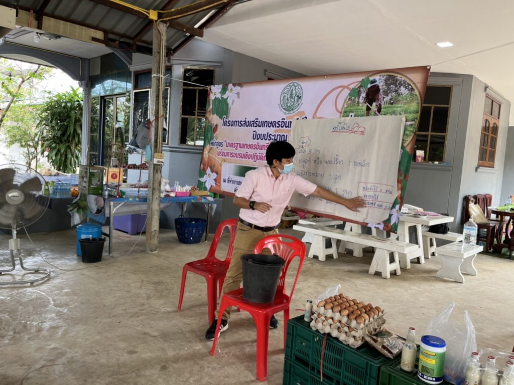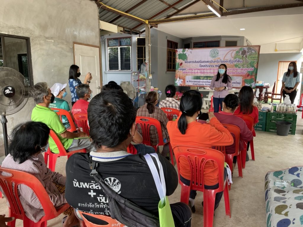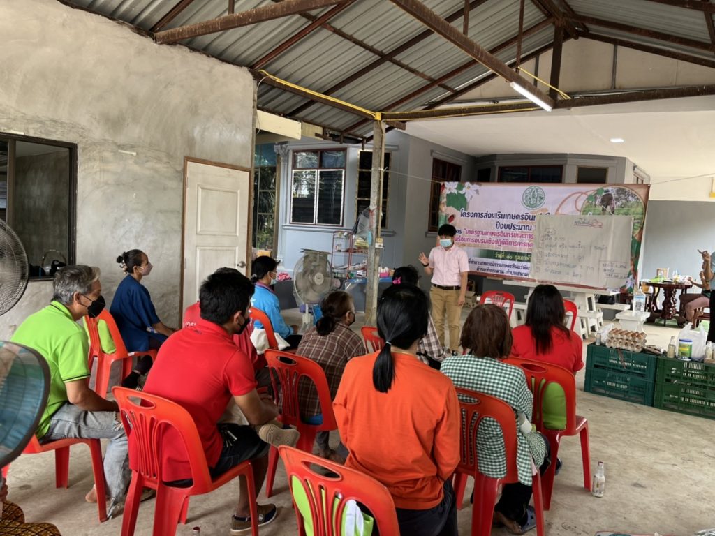 วันที่ 11 กุมภาพันธ์ 2565 นางอัญชนะ เกงขุนทด นักวิชาการส่งเสริมการเกษตร ชำนาญการพิเศษรักษาราชการแทนเกษตรอำเภอสนามชัยเขต มอบหมายให้นางสาวอรพรรณ ชุติวศินนักวิชาการส่งเสริมการเกษตรชำนาญการ และนางสาวคีธีมาศ ใหม่ใจ นักวิชาการส่งเสริมการเกษตรปฏิบัติการ เป็นวิทยากรถ่ายทอดความรู้ โครงการส่งเสริมเกษตรอินทรีย์ในเขตปฏิรูปที่ดิน ปีงบประมาณ 2565 หลักสูตร “มาตรฐานเกษตรอินทรีย์และตรวจรับรองมาตรฐานเกษตรอินทรีย์พร้อมการอบรมเชิงปฏิบัติการลดต้นทุนการผลิตเกษตรอินทรีย์” ซึ่งจัดโดยสำนักงานปฏิรูปที่ดินเพื่อเกษตรกรรมจังหวัดฉะเชิงเทรา ให้แก่เกษตรกรกลุ่มแปลงใหญ่พืชผักตำบลท่ากระดาน ณ หมู่ที่ 7 ตำบลท่ากระดาน อำเภอสนามชัยเขต จังหวัดฉะเชิงเทรา