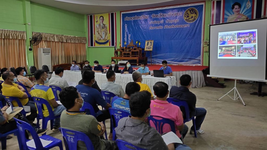 วันที่ 5 มีนาคม 2564 เวลา 14.00 น. นายชัชวาลย์ ลิ้มประสิทธิศักดิ์ นักวิชาการส่งเสริมการเกษตรชำนาญการ รักษาราชการแทนเกษตรอำเภอท่าตะเกียบ มอบหมายให้ว่าที่ร้อยตรีรักพงษ์ วงศ์รอด นักวิชาการส่งเสริมการเกษตรปฏิบัติการ และว่าที่ เรือตรีกิตติศักดิ์ โชคชัยชำนาญกิจ นักวิชาการส่งเสริมการเกษตร เข้าร่วมประชุมกองทุนช่วยเหลือช้างป่าอำเภอท่าตะเกียบ เพื่อจัดกิจกรรมการวิ่งมาราธอน นำเงินสมทบกองทุนช่วยเหลือช้างป่าและผู้ประสบภัยช้างป่าอำเภอท่าตะเกียบ โดยมีนายเกรียงศักดิ์ มิตรประกอบโชค นายอำเภอ ท่าตะเกียบเป็นประธานการประชุม ณ หอประชุมอำเภอท่าตะเกียบ จังหวัดฉะเชิงเทรา