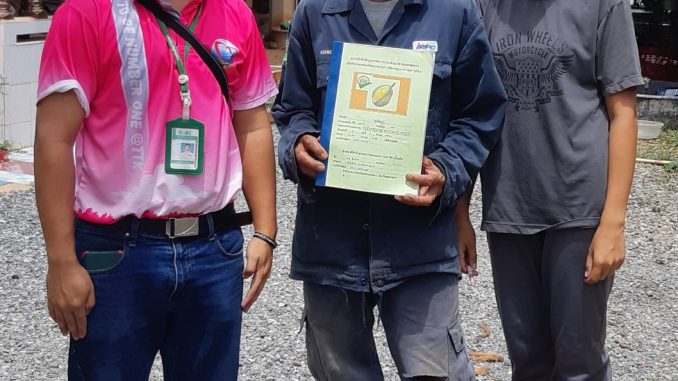 วันที่ 25 พฤษภาคม 2564 เวลา 13.00 น. นายชัชวาล ลิ้มประสิทธิศักดิ์ นักวิชาการส่งเสริมการเกษตรชำนาญ มอบหมายให้นายสิทธิกร แสนอ้วน นักวิชาการส่งเสริมการเกษตร ติดตามให้คำปรึกษาและตรวจประเมินแปลงเบื้องต้น ตามโครงการยกระดับคุณภาพมาตรฐานสินค้าเกษตร ปี 2564 เป้าหมายเกษตรปลูกทุเรียน จำนวน 1 ราย ณ พื้นที่บ้านห้วยโสม หมู่ 11 ตำบลคลองตะเกรา อำเภอท่าตะเกียบ จังหวัดฉะเชิงเทรา