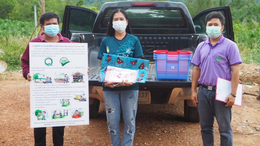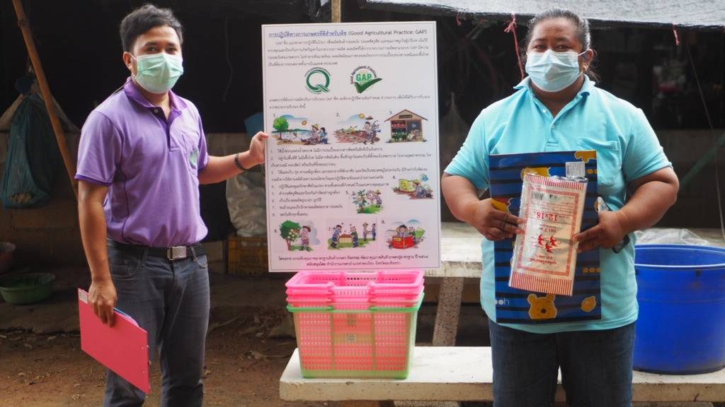 วันที่ 7 กรกฎาคม 2564 เวลา 13.00 น. นายชัชวาล ลิ้มประสิทธิศักดิ์ นักวิชาการส่งเสริมการเกษตรชำนาญการ มอบหมายให้นายสิทธิกร แสนอ้วน นักวิชาการส่งเสริมการเกษตร ลงพื้นที่ส่งมอบวัสดุตามโครงการยกระดับคุณภาพมาตรฐานสินค้าเกษตร กิจกรรมพัฒนาคุณภาพสินค้าเกษตรสู่มาตรฐาน ปี 2564 กิจกรรมสนับสนุนการจัดการและพัฒนาผลิตผลสินค้าเกษตร GAP ในขั้นต้น ให้กับเกษตรกรที่เข้าร่วมโครงการ จำนวน 8 ราย ณ พื้นที่บ้านหนองเรือ หมู่ 10 และบ้านคลองสียัด หมู่ 18 ตำบลท่าตะเกียบ อำเภอท่าตะเกียบ จังหวัดฉะเชิงเทรา