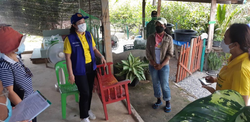 วันที่ 23 สิงหาคม 2564 เวลา 13.00 น.นางเนาวรัตน์ ทิพสุวรรณ์ เกษตรอำเภอ(นักวิชาการส่งเสริมการเกษตรชำนาญการ) รักษาราชการแทนเกษตรอำเภอท่าตะเกียบ พร้อมด้วยว่าที่ร้อยตรีรักพงษ์ วงศ์รอด นักวิชาการส่งเสริมการเกษตรปฏิบัติการ และว่าที่เรือตรีกิตติศักดิ์ โชคชัยชำนาญกิจ นักวิชาการส่งเสริมการเกษตร ลงพื้นที่เพื่อเตรียมความพร้อมสถานที่ประชาสัมพันธ์ผ่านสื่อมวลชน ประเด็นกิจกรรมการปกครองตามนโยบายการสร้างความเข้มแข็งให้กับ หมู่บ้าน ตำบล อำเภอ “หมู่บ้าน อยู่เย็น”เพื่อบรรเทาความเดือดร้อนในช่วงสถานการณ์การแพร่ระบาดโรค covid-19 โดยมีนางสาวรัศมินท์ พฤกษาทร นายอำเภอท่าตะเกียบ ร่วมลงพื้นที่ด้วย ณ บ้านหนองขาหยั่ง หมู่ 5 ตำบลคลองตะเกรา อำเภอท่าตะเกียบ จังหวัดฉะเชิงเทรา