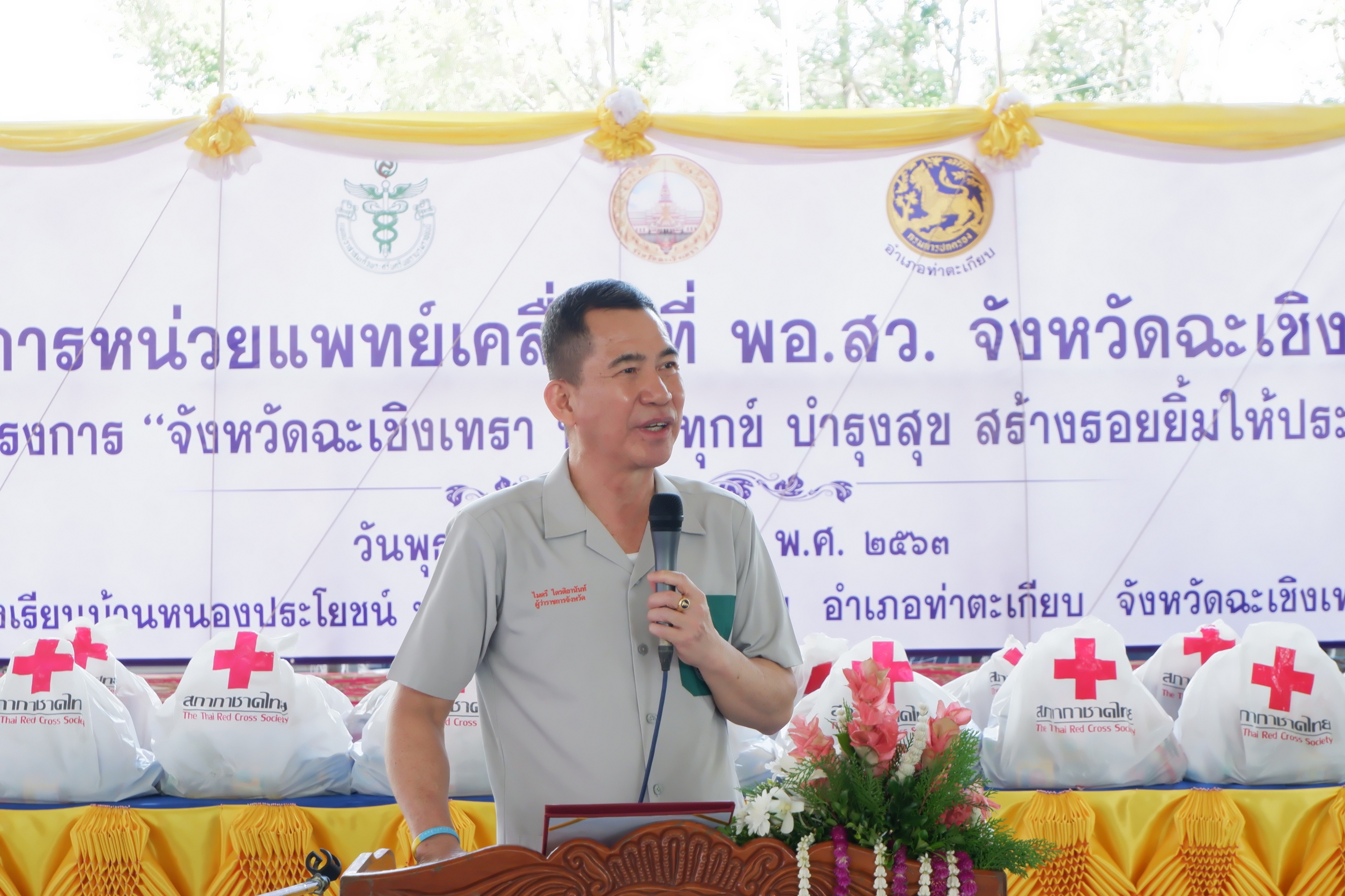 วันที่ 25 พฤศจิกายน 2563 เวลา 09.00 น.นางสาวอาภาภรณ์ ชูเกียรติศิริ เกษตรอำเภอท่าตะเกียบ พร้อมเจ้าหน้าที่สำนักงานเกษตรอำเภอท่าตะเกียบ และกลุ่มเกษตรกรร่วมกิจกรรมโครงการหน่วยแพทย์เคลื่อนที่ พอ.สว.จังหวัดฉะเชิงเทรา และโครงการ “จังหวัดฉะเชิงเทรา บำบัดทุกข์ บำรุงสุข สร้างรอยยิ้มให้ประชาชน” โดยมีนายไมตรี ไตรติลานันท์ ผู้ว่าราชการจังหวัดฉะเชิงเทรา เป็นประธานฯ ณ โรงเรียนบ้านหนองประโยชน์ หมู่ 6 ตำบลท่าตะเกียบ อำเภอท่าตะเกียบ จังหวัดฉะเชิงเทรา